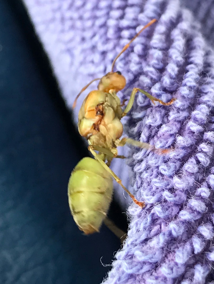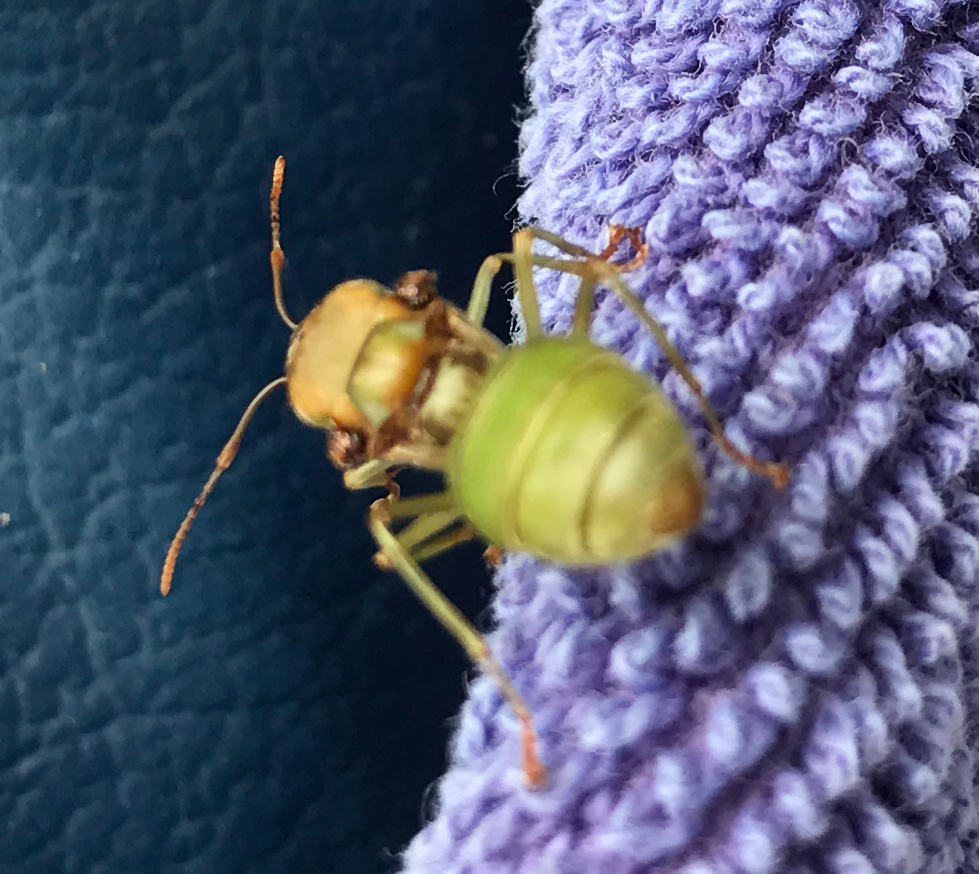 Leider sind die Fotos nicht allzu berauschend, da sie einerseits recht flink unterwegs war und ich andererseits nur mein Handy als Kamera hatte. Zwar geht es nicht wirklich um etwas, da ich sie natürlich nicht gefangen und stattdessen vorsichtig am nächsten Baum abgesetzt habe, aber ich dachte, es würde dennoch den einen oder die andere von euch interessieren - außerdem bin ich neugierig, um welche Art es sich handeln könnte (sofern man das in dem Fall und mit den spärlichen Fotos überhaupt sagen kann.