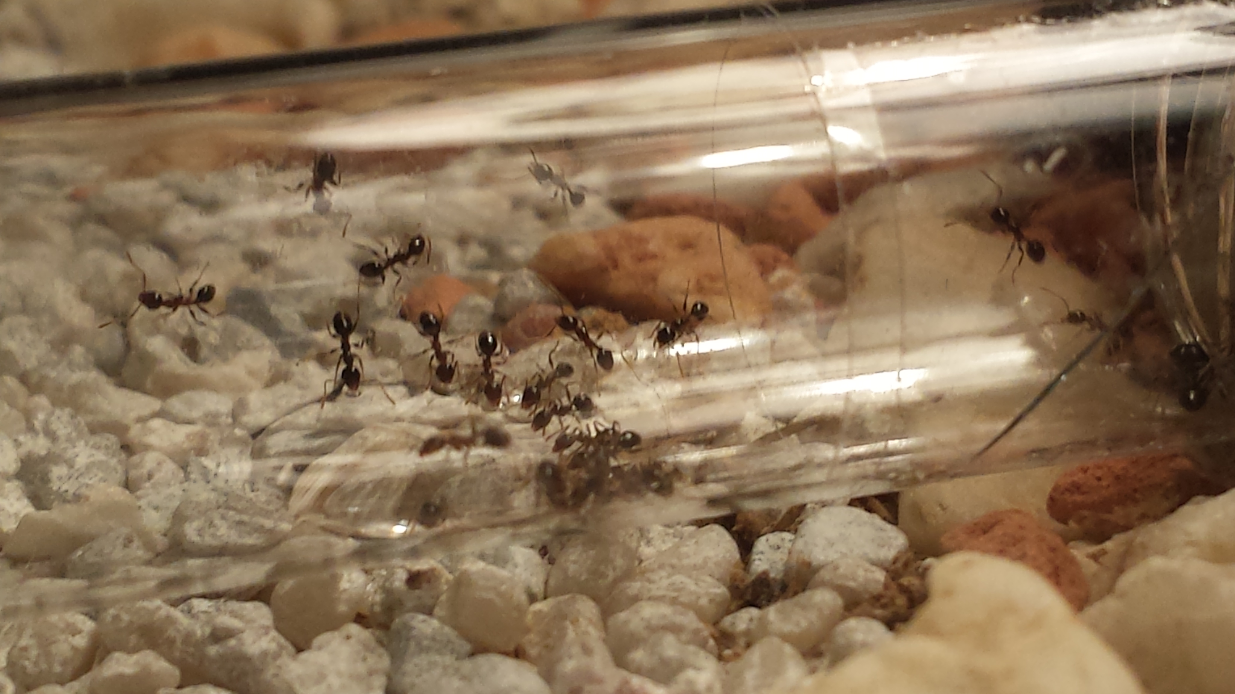 Ich habe meinen Ants fast zwei Wochen kein Zuckerwasser mehr gegeben und ca. 1/3 der ganzen Kolonie waren am Zuckertropfen.