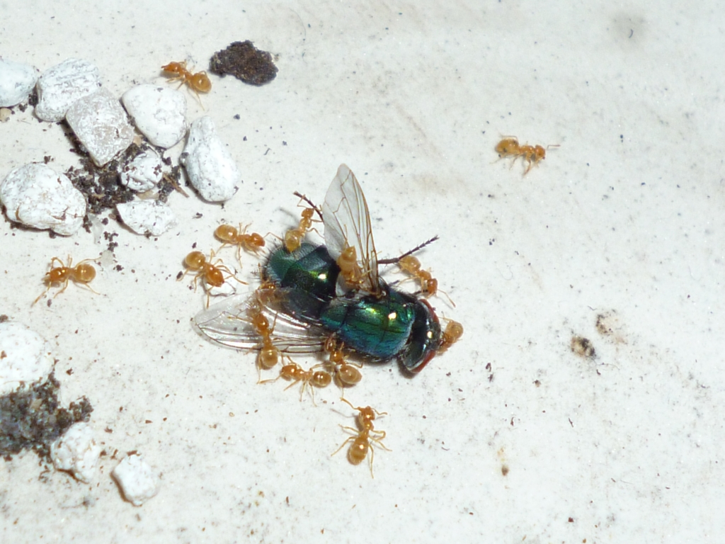 Die Kolonie entwickelt sich prĂ€chtig und es ist momentan viel AktivitĂ€t in der Arena feststellbar. Ich habe zwei Bilder von der FĂŒtterung fĂŒr euch.