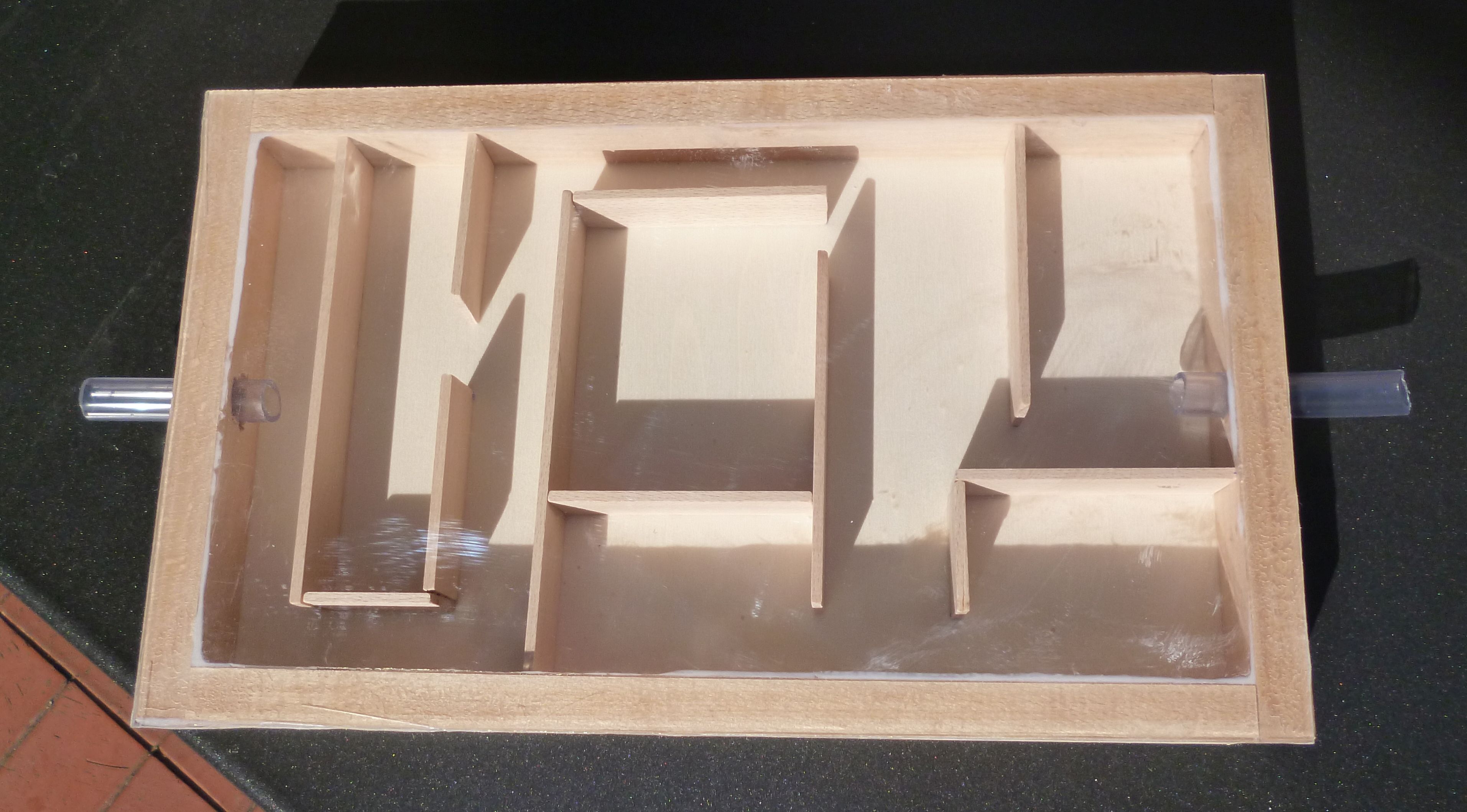 Bodenplatte mit Rahmen aus Buchenleisten, noch nicht verleimt (Löcher für den Verbindungsschlauch fehlen auch noch):