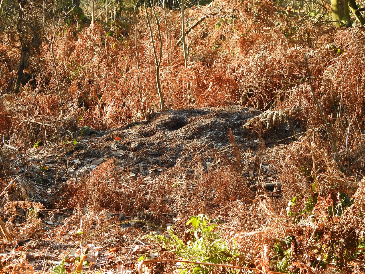 Zur Nestdichte, na ja es ist nicht so, dass mal alle drei Meter über ein Nest stolpert. Ich würde schätzen, dass etwa alle zwanzig bis fünfzig Meter ein Nest zu finden ist. Diese Aussage ist jetzt aber wirklich nur grob geschätzt, da ich noch nicht versucht habe sämtliche Nester zu finden und auch noch kein Maßband in die Hand genommen habe. Momentan ist das auch unmöglich da ein Großteil des Bodens mit Laub bedeckt ist. Es handelt sich hier um einen Mischwald, es sind viele Fichten aber auch Eichen usw. vorhanden.