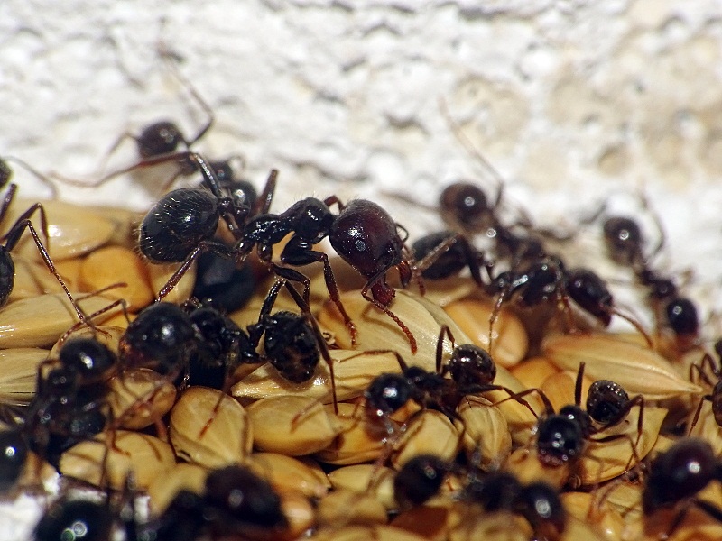 Formica sanguinea beim zerteilen von einem Heimchen.