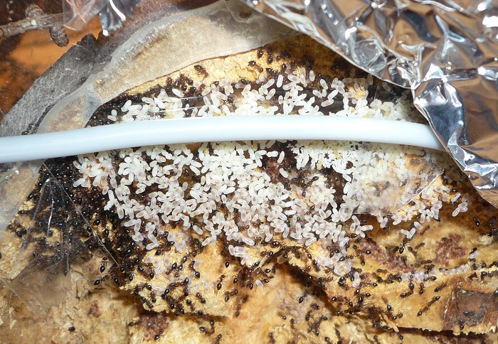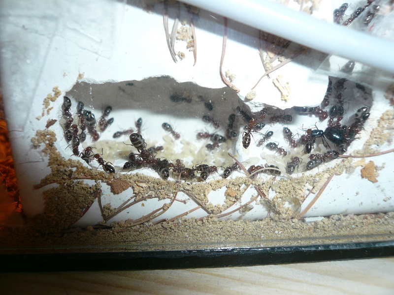 C. herculeanus hatten in der WR ein Nahtoderlebnis, der Wassertank war halb gefroren, dadurch hat sich der Nanoporen-Stopfen (ich benutze die, weil sich die Ameisen darin nicht verheddern können - ja, auch diese Art von Tod hate ich schon^^) verschoben und das Wasser hat nach dem Tauen das RG geflutet. Alle Arbeiterinnen lebten noch, nur die