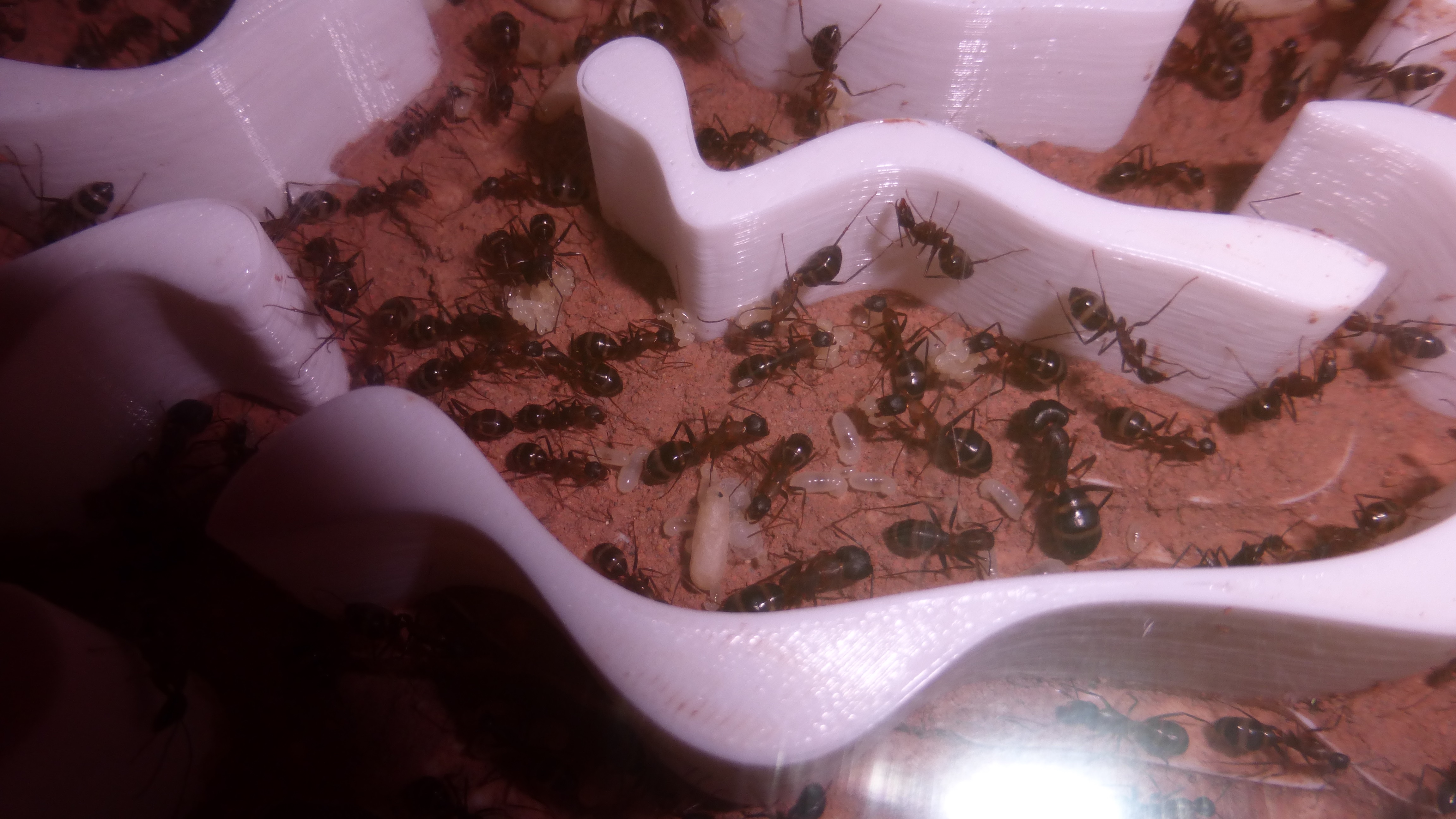Brut zu versorgen (die neue Kamera ist super für so kleine Ameisen, genug Beleuchtung vorausgesetzt). Frage mich wann die vorhaben in die