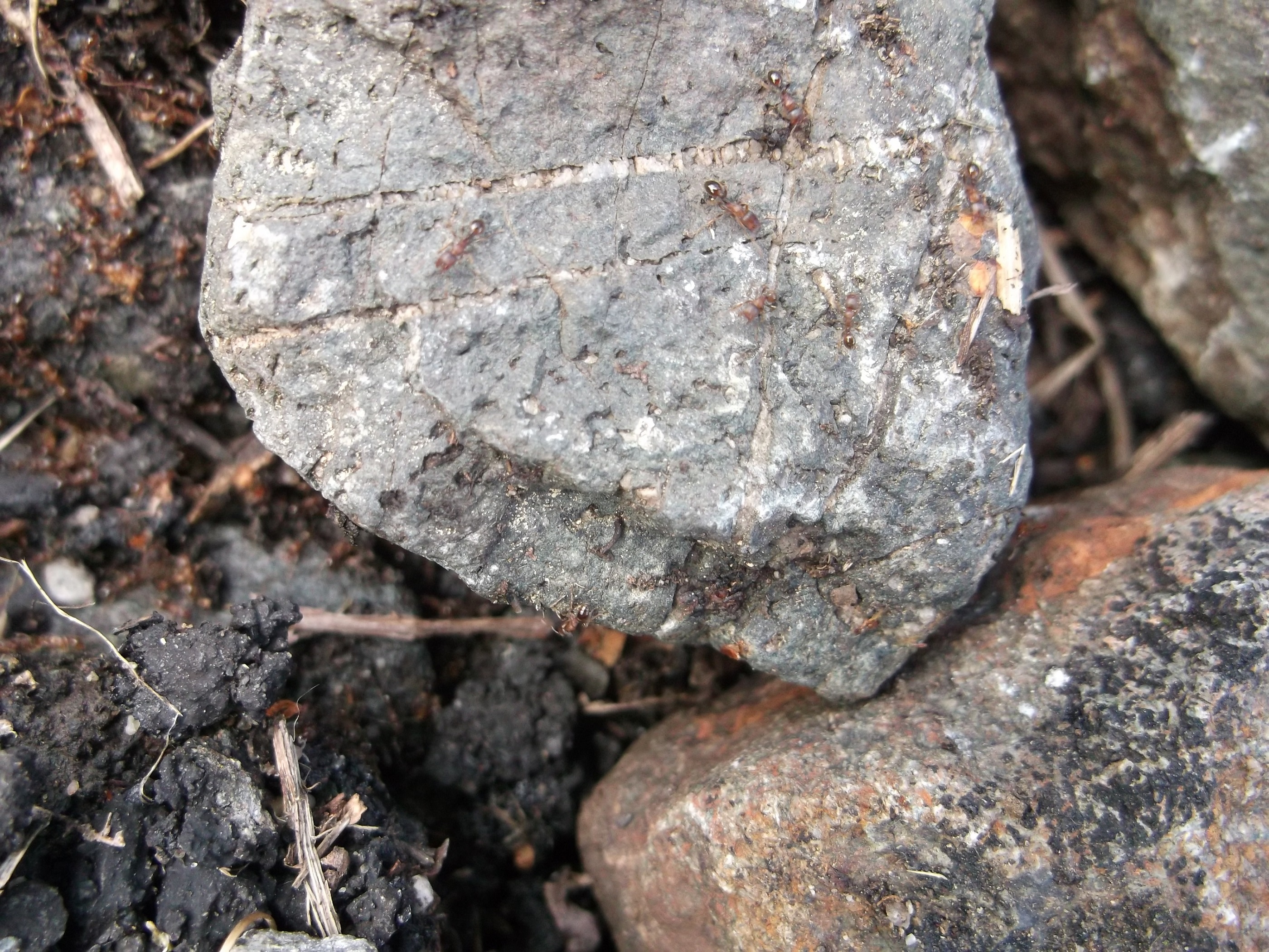 Zu dieser Kolonie kann ich noch sagen, dass ich an einer Stelle mit etwas Einblick in das Nest hatte und Geschlechtstiere sehen konnte. Die Jungköniginnen waren ungefĂ€hr einen Zentimeter groĂ (ich tendiere zu etwas kleiner) und die MĂ€nnchen kaum gröĂer als die Arbeiterinnen, beide Geschlechtstiere waren sehr dunkel (ich wĂŒrde meinen schwarz, aber es war schlecht beleuchtet).