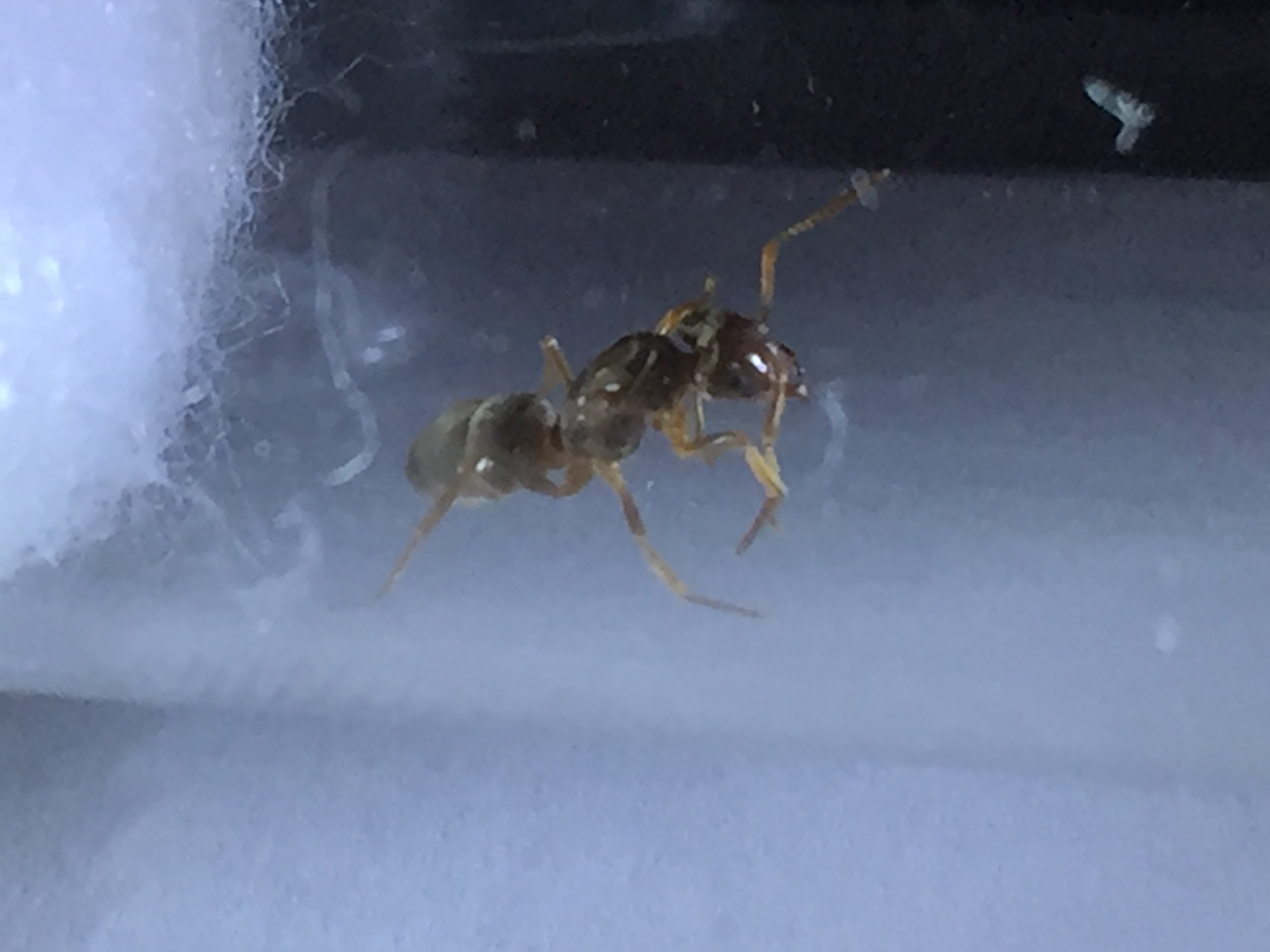 Ich habe eine einzelne Arbeiterin einer lasius Niger Kolonie in das RG gegeben, in Erwartung das die Queen diese tötet um den Duft der Kolonie anzunehmen. Allerdings lief es Ă€nderst als erwartet ab. Die Arbeiterin hat die Queen attackiert. Diese hat aber immer wieder die NĂ€he gesucht. Nach etwa einer Stunde jetzt haben sie sich scheinbar angefreundet. Die Arbeiterin scheint die Queen zu putzen und zu fĂŒttern.