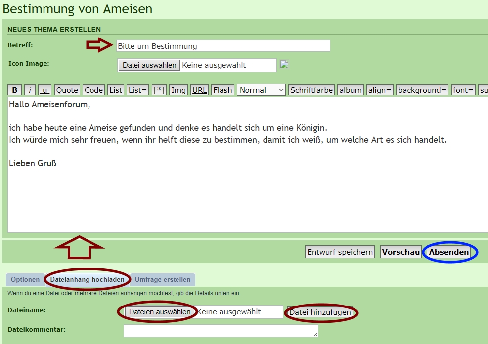 Nun erscheint dein neu erstelltes Thema im Unterforum Bestimmung von Ameisen und ist auch im, anfangs erwähnten, Portal sichtbar.