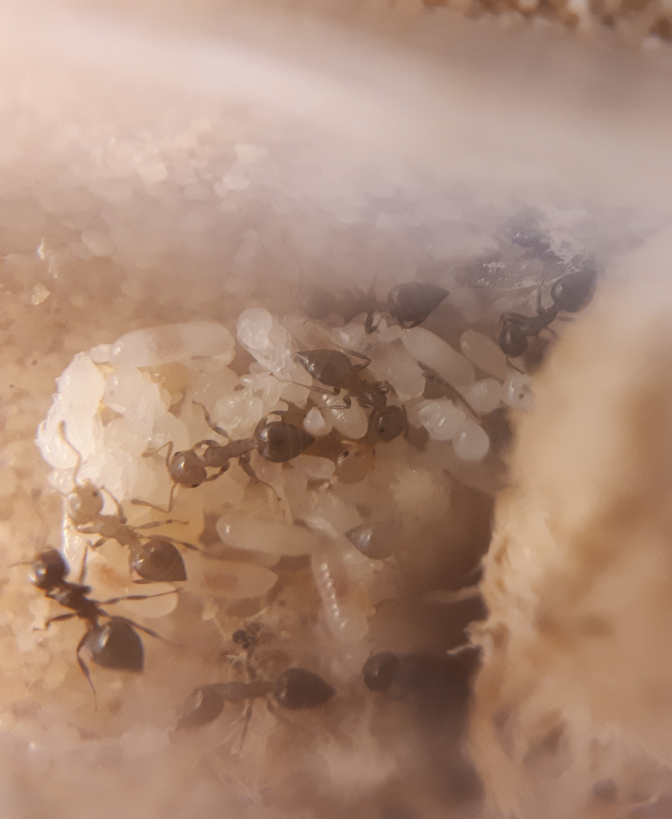Larven abzudecken und ihnen womöglich somit Feuchte zu entziehen. Das Selbe sehen wir auch oben bei den Crematogaster scutellaris und in meinem letzten Beitrag bei den kleineren