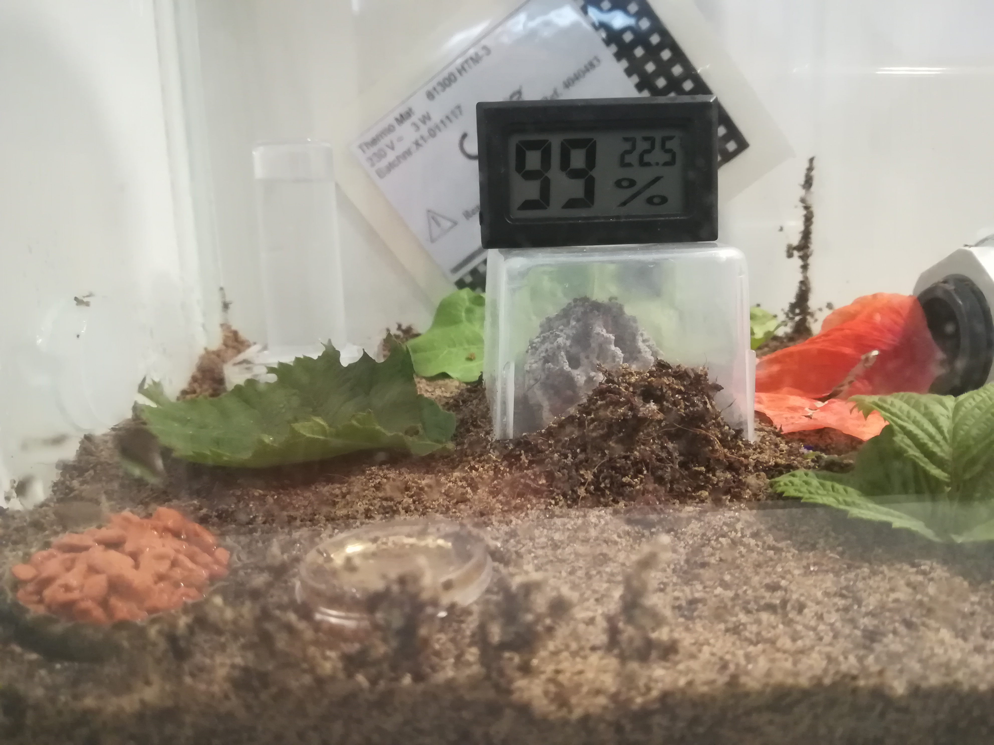 Die Luftfeuchte halte ich durch befeuchten der BlÀtter im Futterbecken zwischen 85 und 96%.