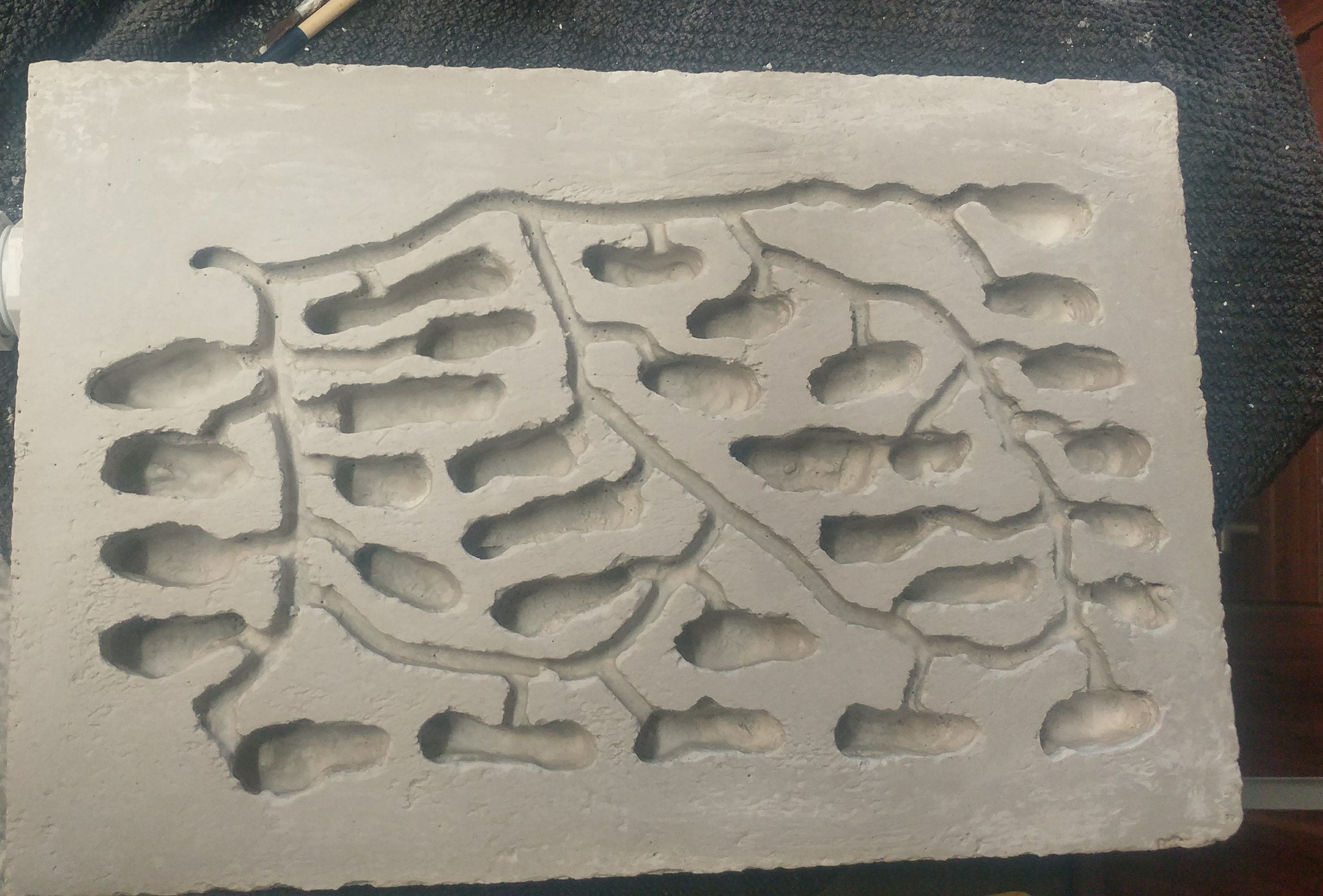Nach dem FrĂ€sen wurde der Stein gut gewaschen und anschließend mit Gips bestrichen.
