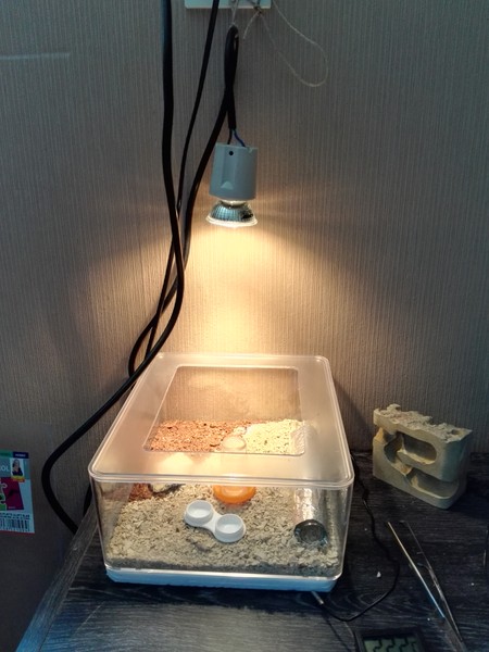 - Ab der dritten Woche spendierte ich ein Terrarienlicht. Dieses hob die Temperatur auf 26 - 27 Grad
