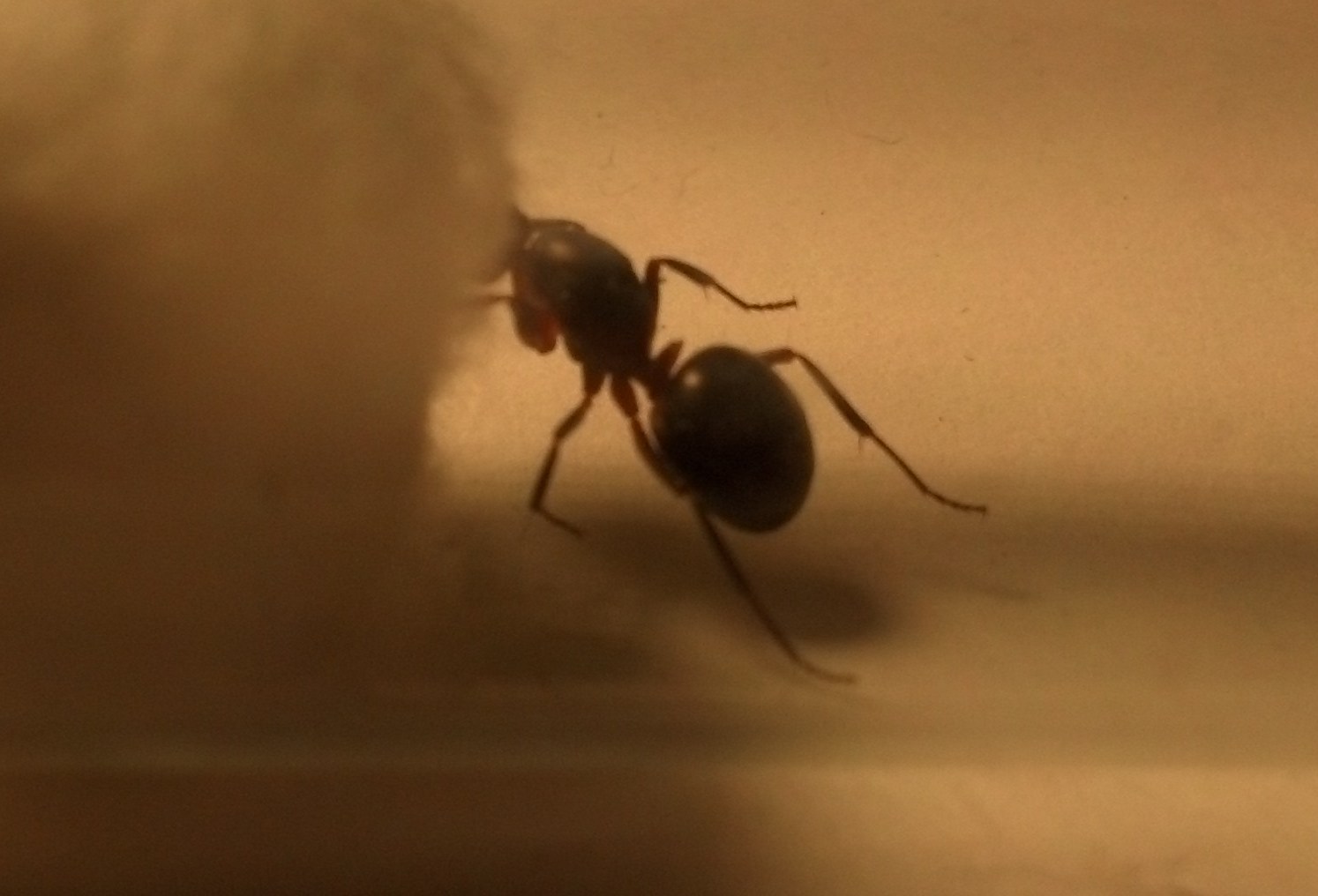 Dann machte ich mich daran, die restlichen Ameisen zurĂŒck ins Formi zu bringen und blockierte den Fluchtweg (das herunterhĂ€ngende Heizkabel war gegen das Formi gestoĂen.