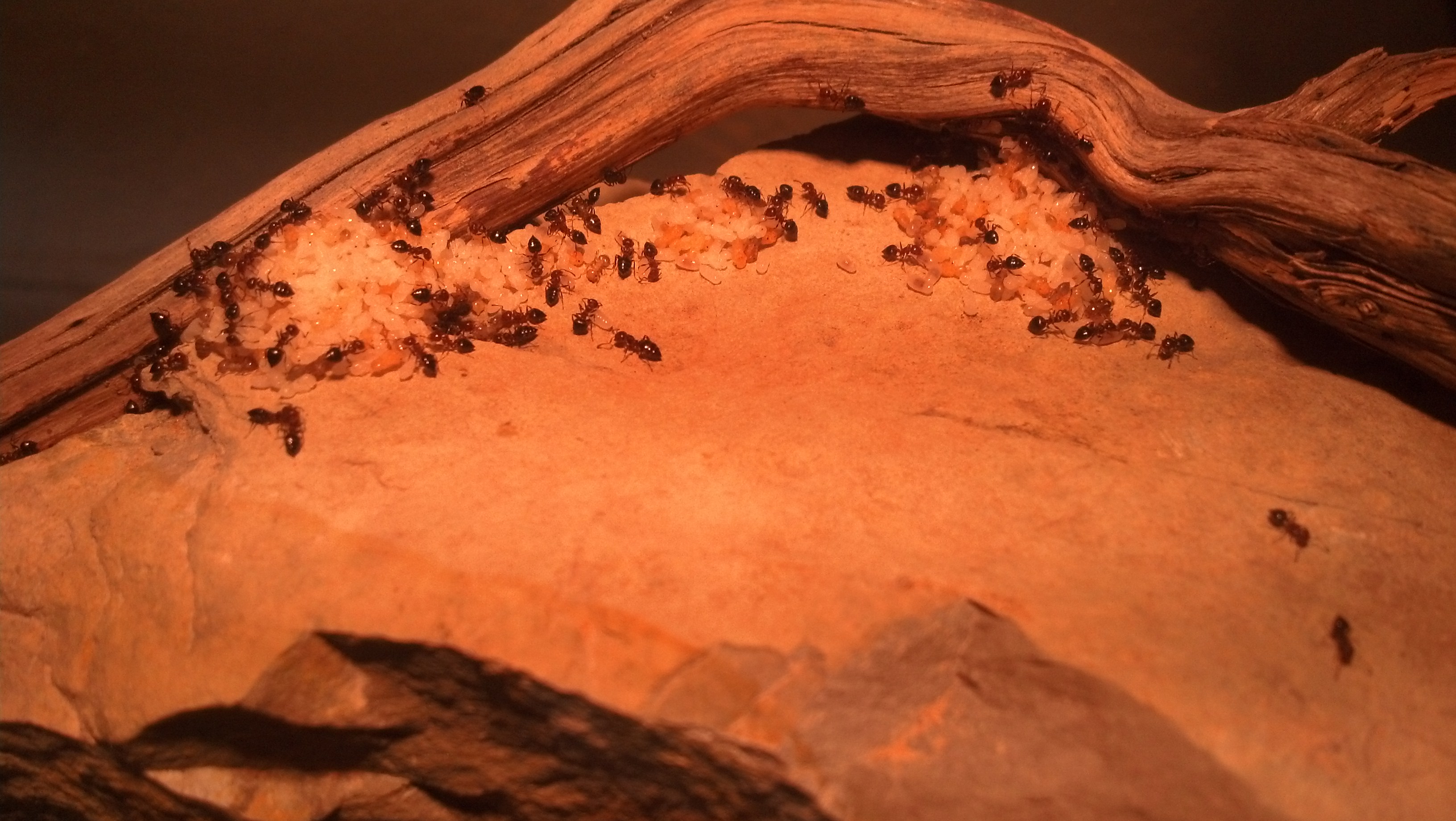 Die Crematogaster schmidti haben einiges anBrut unter ihrem Stein, wie man hier sieht: