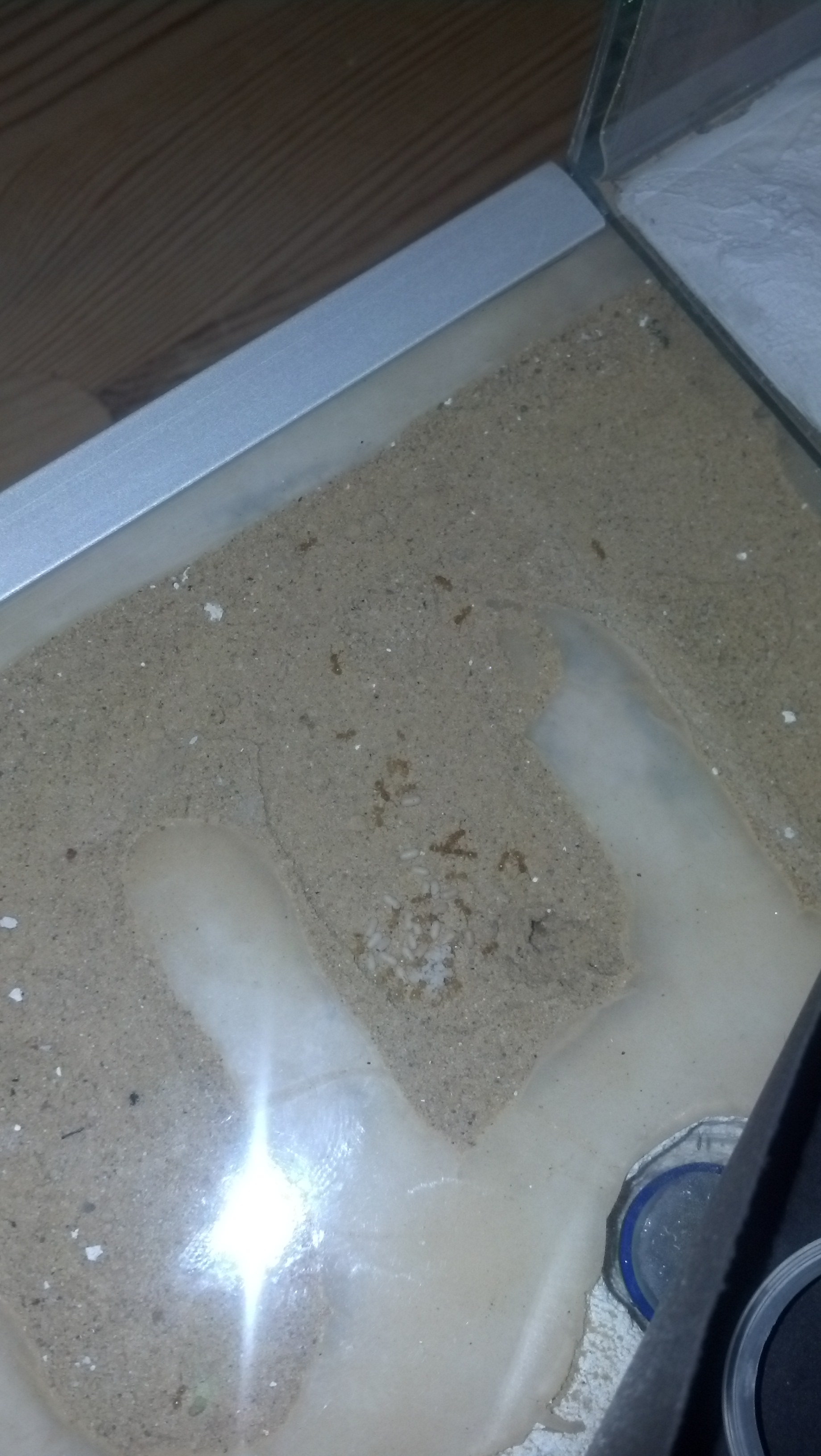 Die Lasius flavus tun brav das, was ich mit ihnen vorhatte und werden fleiĂig mehr. Ich hatte ja mit ihnen vor, sie komplett unterirdisch zu halten und auch dort zu fĂŒttern, das funktioniert sehr gut.