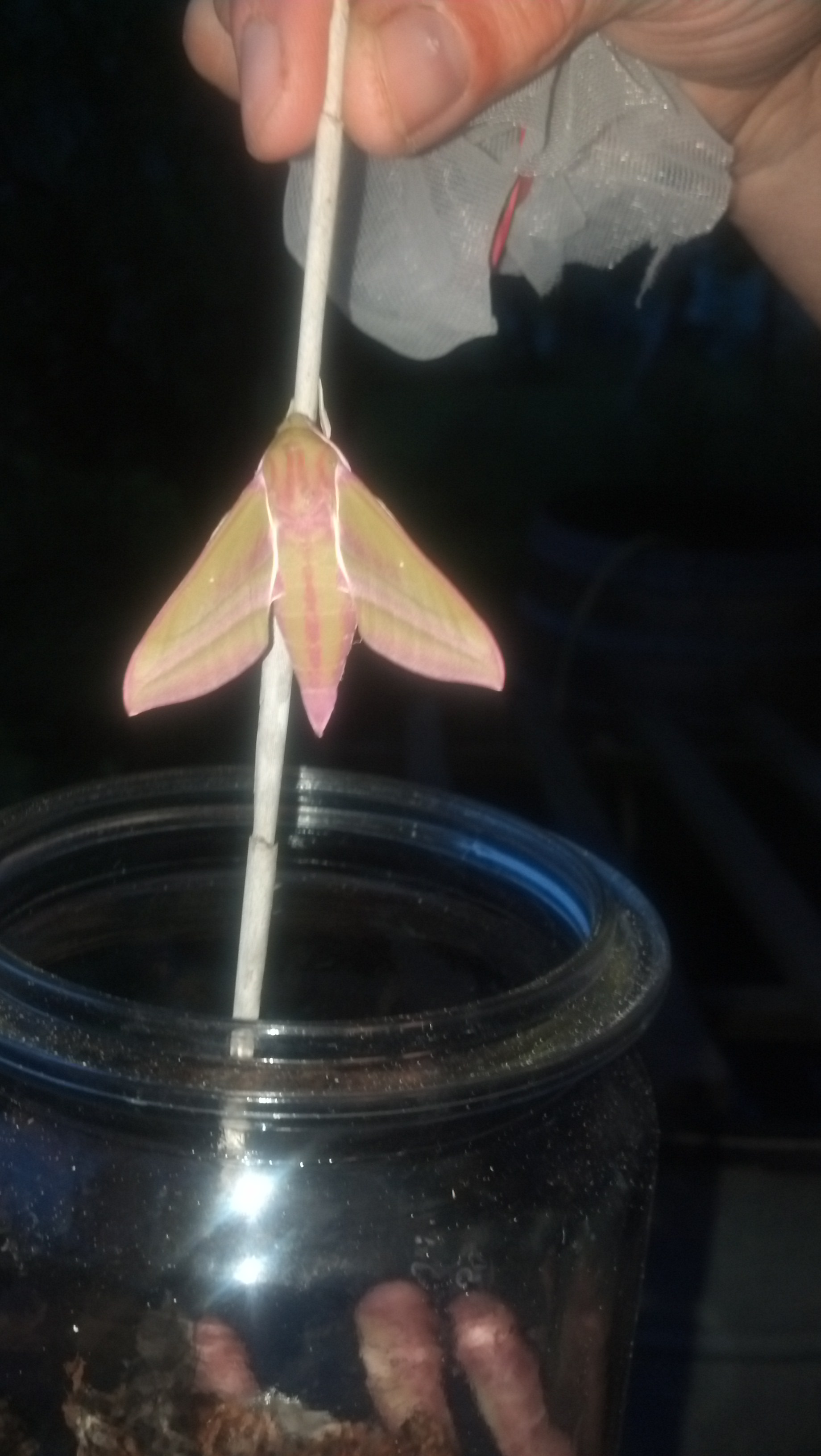 Bei dem hĂŒbschem Falter handelt es sich um Deilephila elpenor, auch "Mittlerer WeinschwĂ€rmer" genannt.