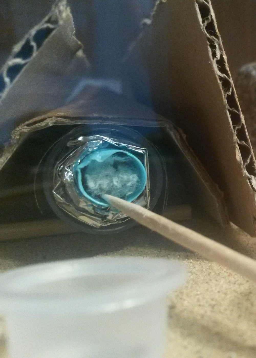 Wie auf den Fotos zu sehen, nutze ich die verschiedenen Stopfen des Formicarium als "NĂ€pfe". Diese NĂ€pfe wurden bisher konsequent gemieden.