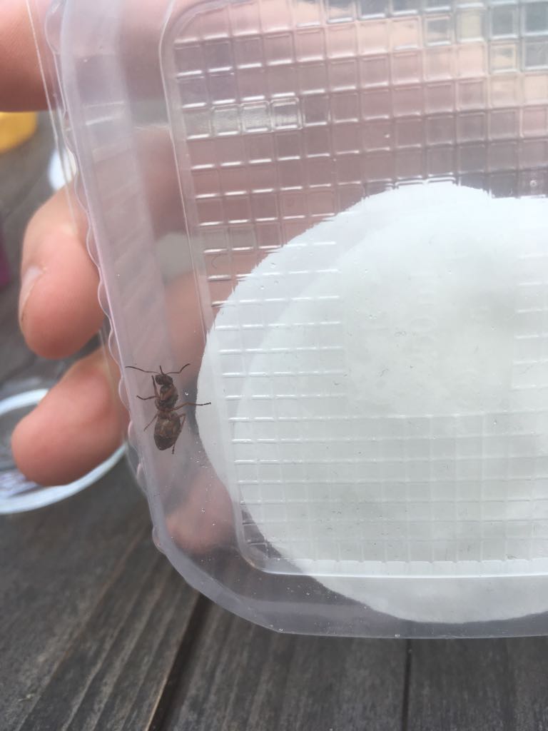 Hey Leute. Ich denke es ist eine Lasius flavus, bin mir aber nicht sicher und bitte um Hilfe. Und reichen die Luftschlitze? Ich hoffe die Box reicht erstmal, hab leider kein Reagenzglas zur Hand, erst in ein paar Tagen. Das Wattepad ist geruchsneutral und ohne ZusĂ€tze. Hab Wasser drauf gemacht und die Dame hat sich auch dahin verzogen. Hab sie ganz verschreckt und aufgeregt an einem StraĂenrand neben einer groĂen Wiese gefunden. Farbe ist dunkel orange bis braun, aber das Orange sieht man deutlich auf der Bauchseite. Denke ca. 10/11 mm groĂ. Die Beine sind Rot bis orange. Man könnte fast schon meinen sie ist rot. WĂŒrde mich ĂŒber Tipps und Hilfe freuen. Bin sehr neu in der Ameisen Welt unterwegs.