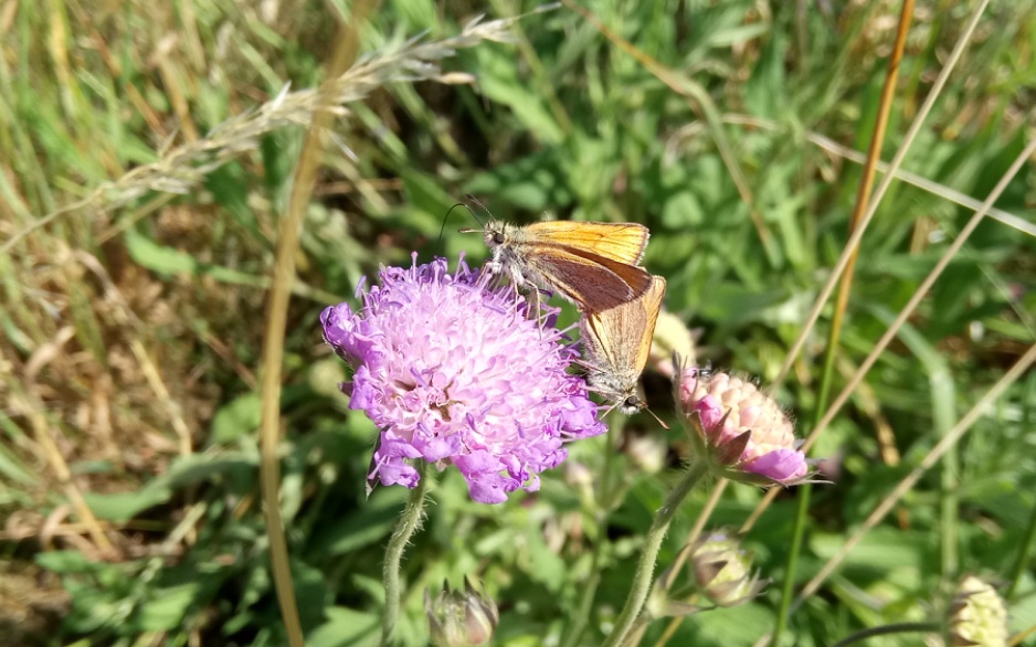 Auch eine Gruppe kleiner Falter, die bei mir trotzdem ziemlich massenhaft auftreten, sind die Dickkopffalter (Hesperiidae).