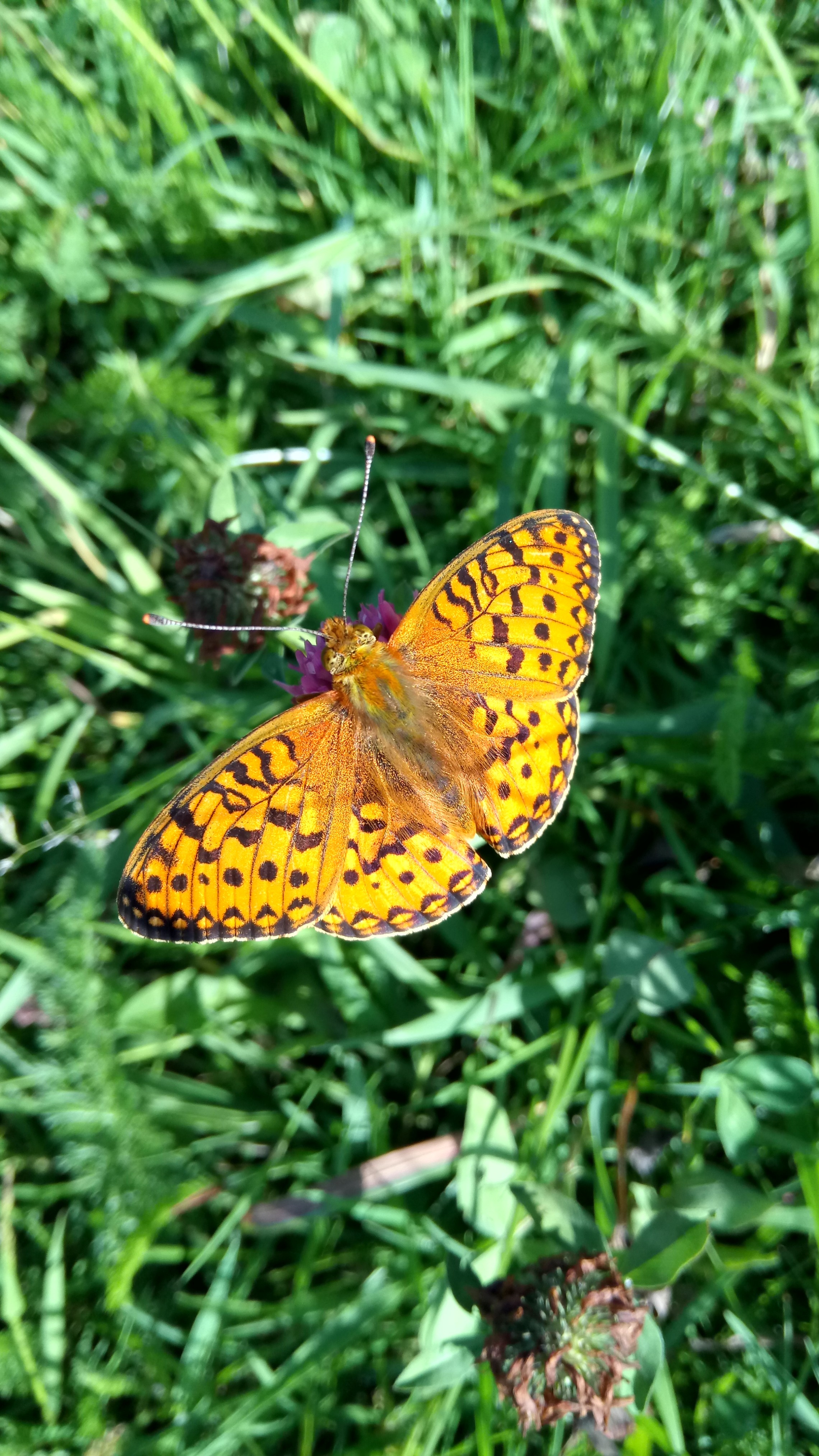 Eine der etwas selteneren Arten ist der GroĂe Perlmuttfalter (Argynnis aglaja). Bisher habe ich nur ein Tier dieser Art gesehen.