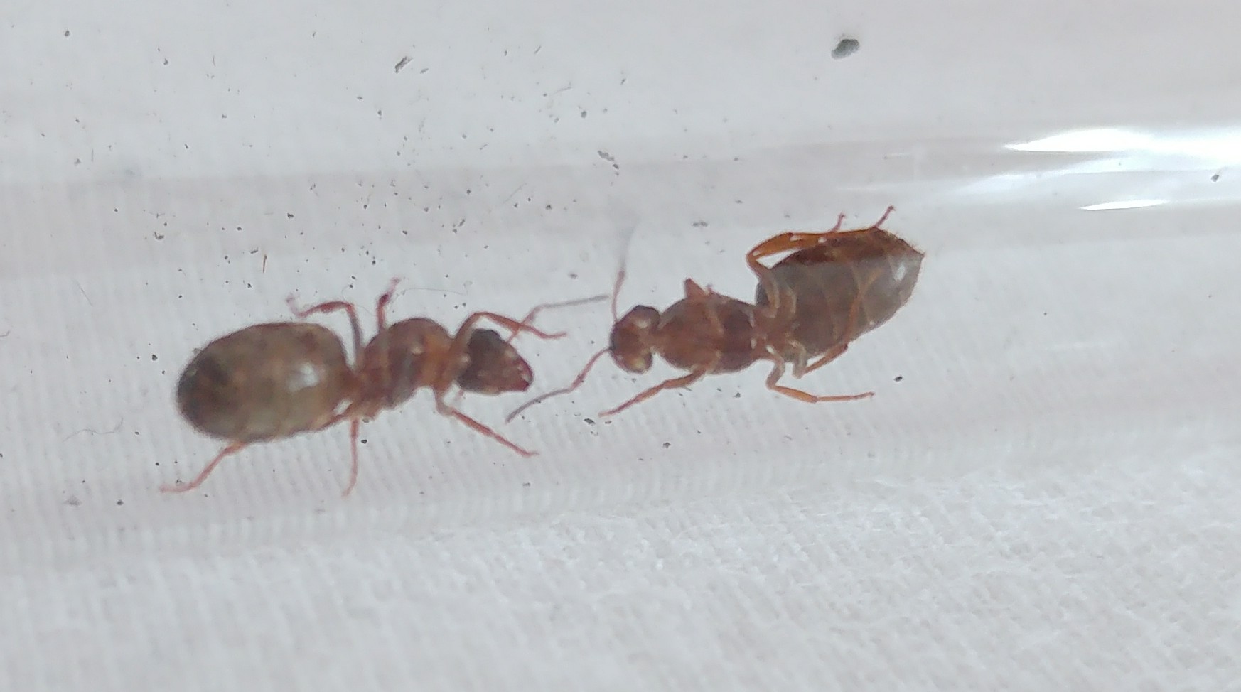 Mein Verdacht lief auf zwei Arten hinaus: Lasius emarginatus und Lasius brunneus. Im Internet sieht man, dass L. brunneus durchgÀngig braun gefÀrbt ist. L. emarginatus hingegen schwarz rötlich, wie es ihr Trivialname auch besagt.