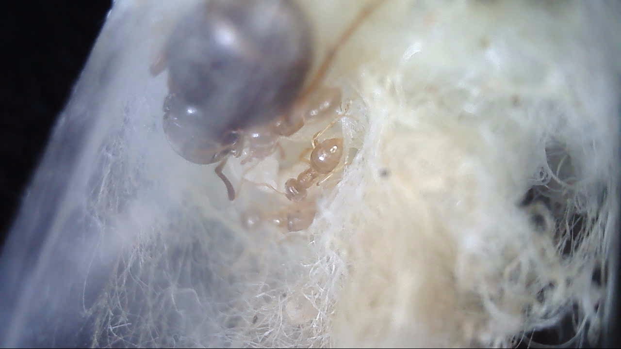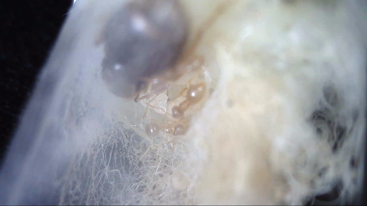 Hallo, nachdem die erste (dunklere) Gyne auf den Bildern oben nun die ersten Arbeiterinnen bekommen hat, bin ich mir nicht sicher was das fĂŒr eine Art ist. Die erste ist letzte Woche geschlĂŒpft. Die ist relativ lang weiß/durchsichtig gewesen.