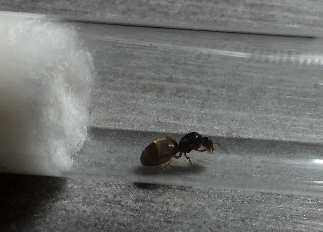 gestern hat es nach langer Trockenheit und Wärme endlich geregnet. Abends sind an unserem Gehweg Ameisen geschwärmt. Ich meine, es könnten Lasius flavus sein, habe aber überhaupt keine Ahnung. Die kleinen ungeflügelten sahen sehr gelb aus, bernsteinfarben würde ich sagen.