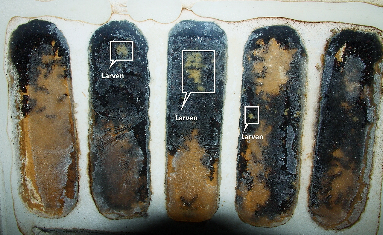 Resultierend leite ich ab, auch eine natürliche Überwinterung, kalt genug und lang genug, führt nicht dazu, das Camponotus ligniperda in der Haltung bis spät in den Sommer aktiv bleiben. Dazu möchte ich noch anmerken, bis auf kurze Perioden, gab es keinerlei Heizungen. Na gut, diesen Sommer war da eher das Gegenteil angesagt. Für mich fraglich, ob nur immer warme Temperaturen für eine derartige Entwicklung maßgebend sind? Mein Ansatz für das nächste Jahr, die Futterversorgung auszudünnen. Bin der Ansicht, dass Ameisen durchaus in der Lage sind bei nicht vorhandenem Futter, die Entwicklung ihrer Larven stagnieren zu lassen. Gut das ist für mich eine Aufgabe, nächstes Jahr an diese Thematik heranzugehen.