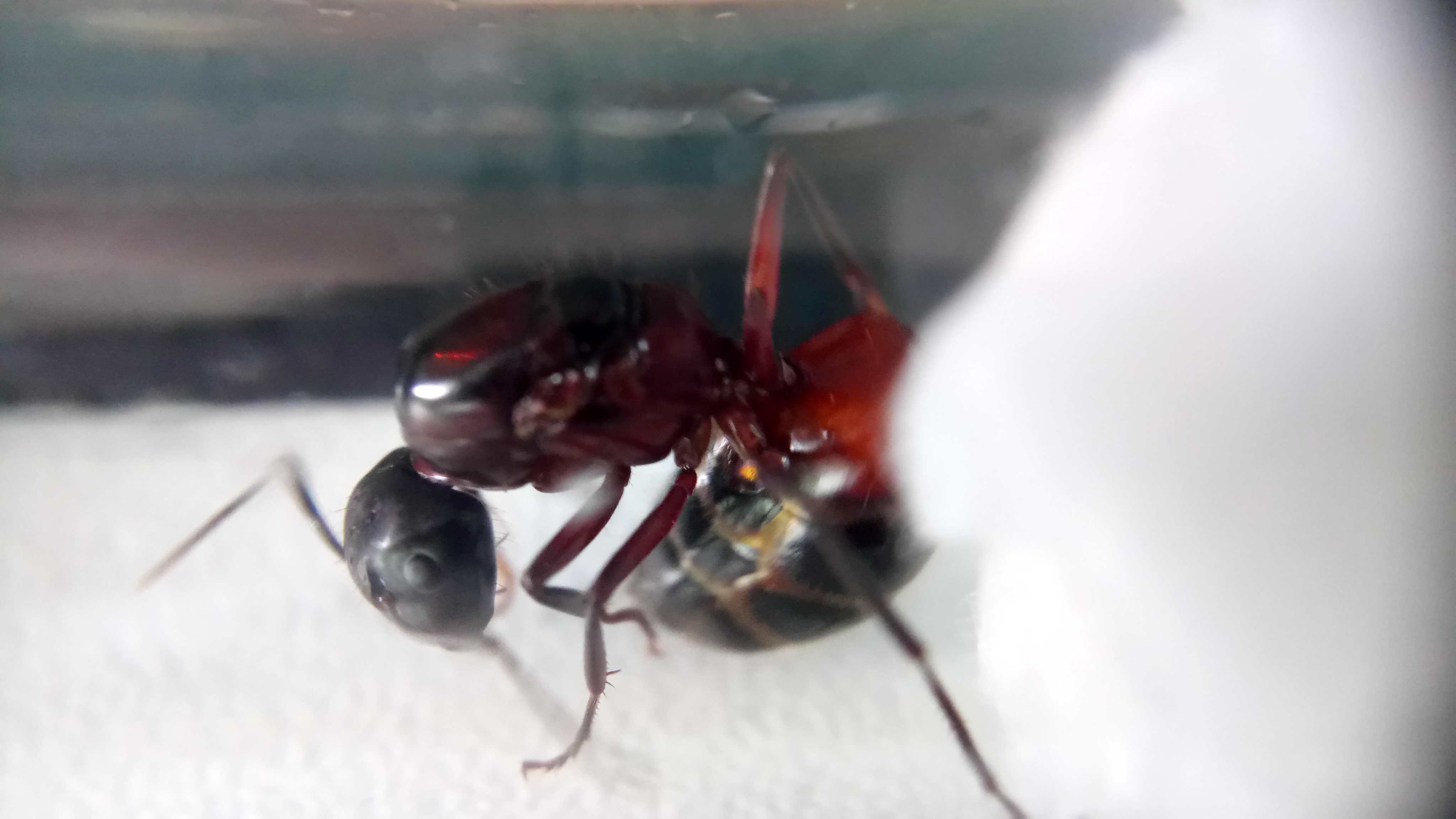 Außerdem habe ich am Sonntag in Thüringen auch eine Camponotus herculeanus gefangen. Die Gyne ist 1,6cm groß und so wie die C. ligniperda echt hübsch.