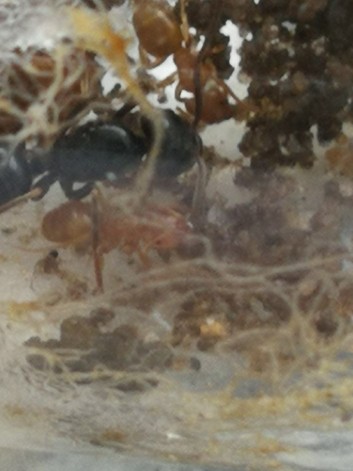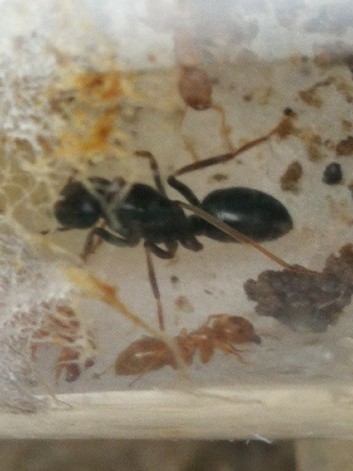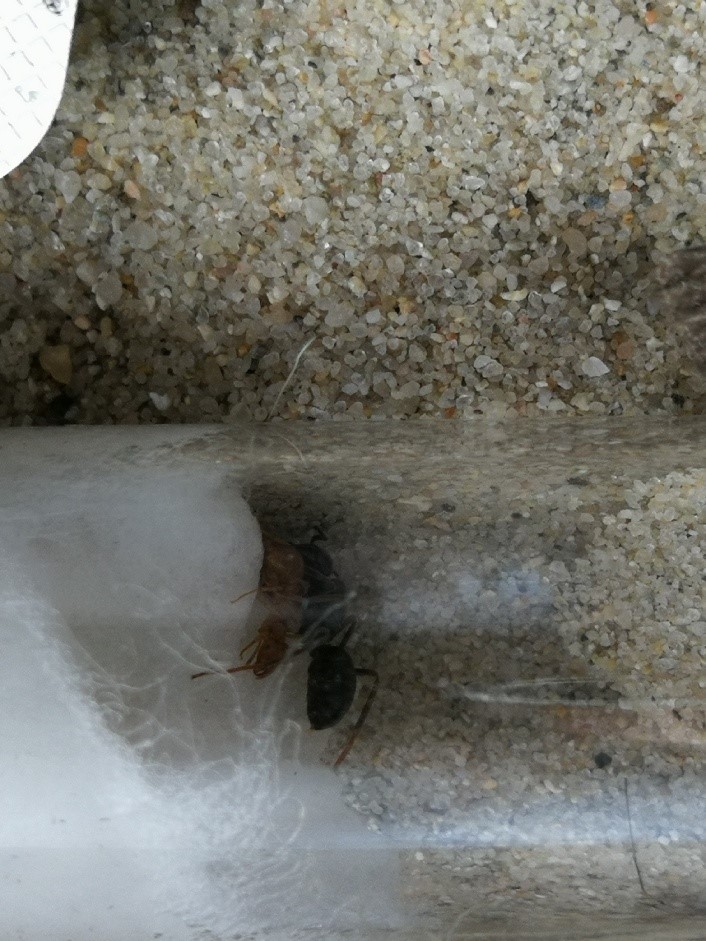 2 Gynen der Lasius fuliginosus wurden gefangen und in die kleine Arena gegeben. Eine (