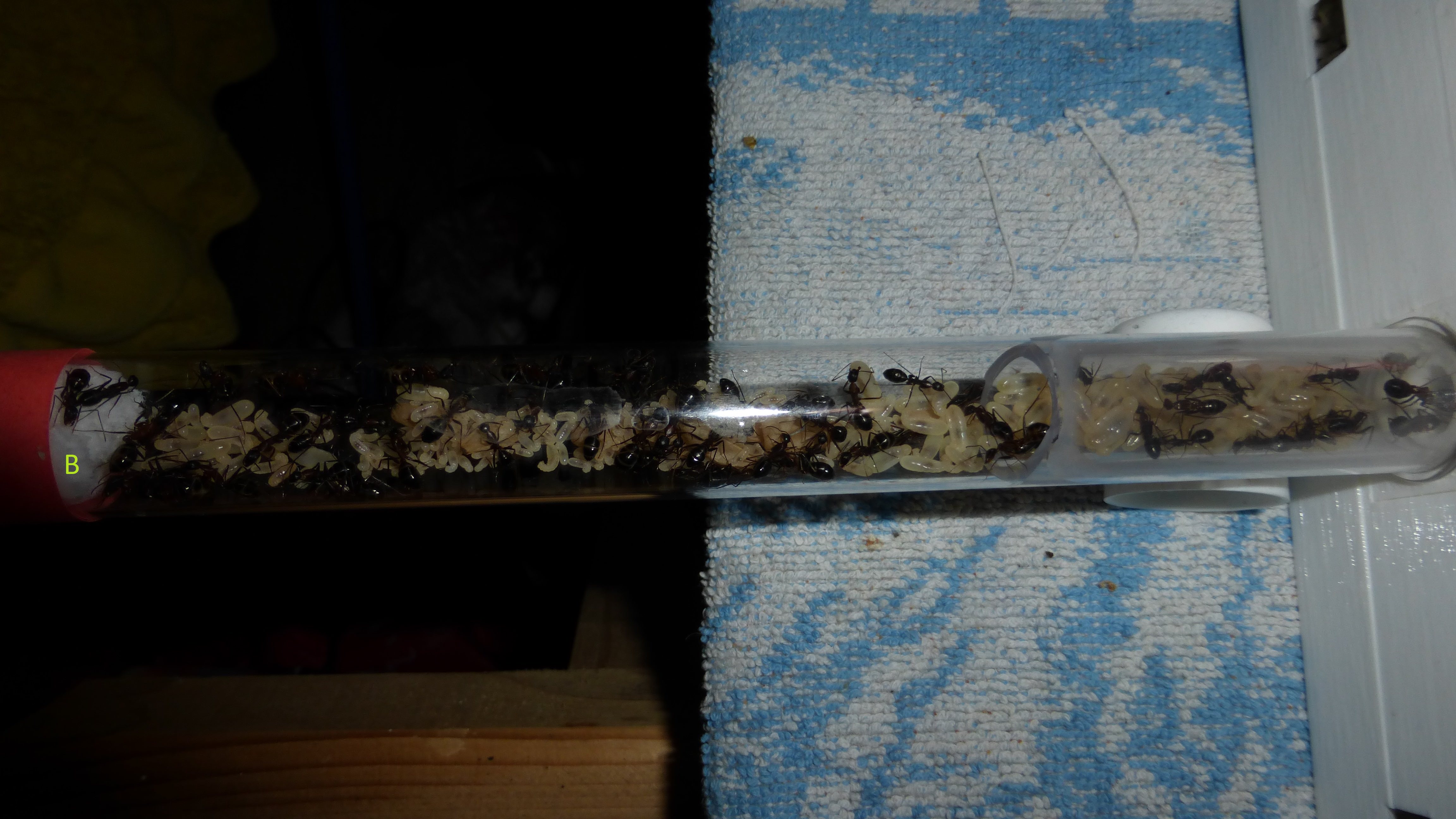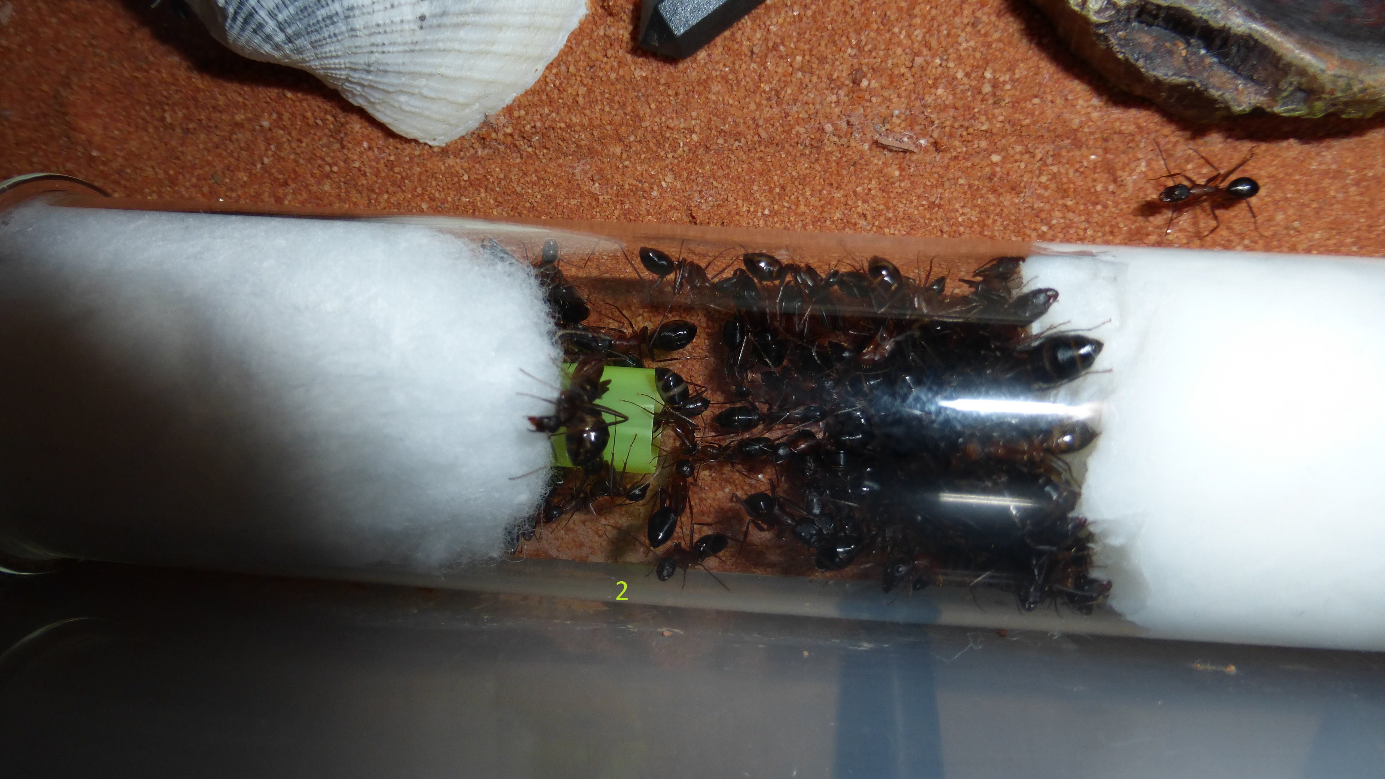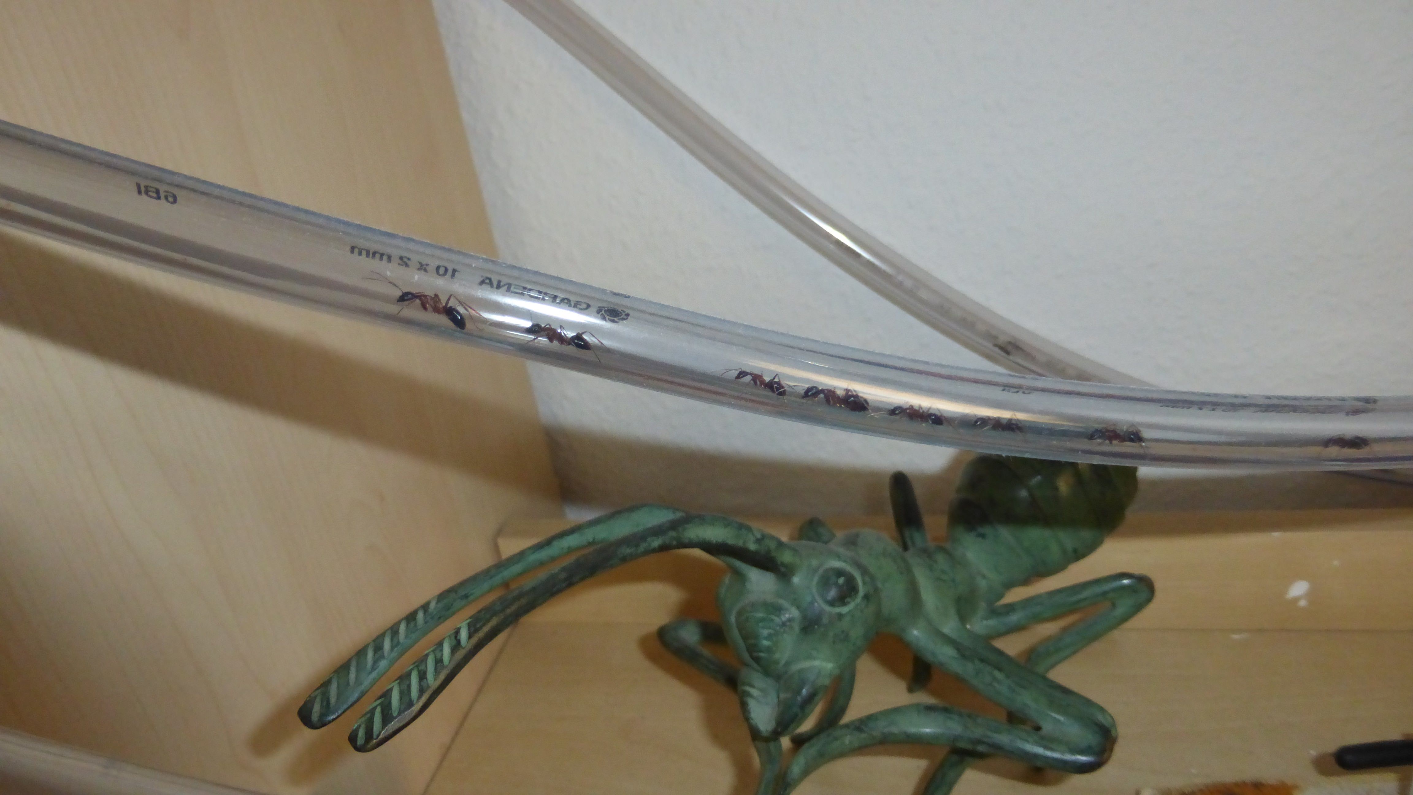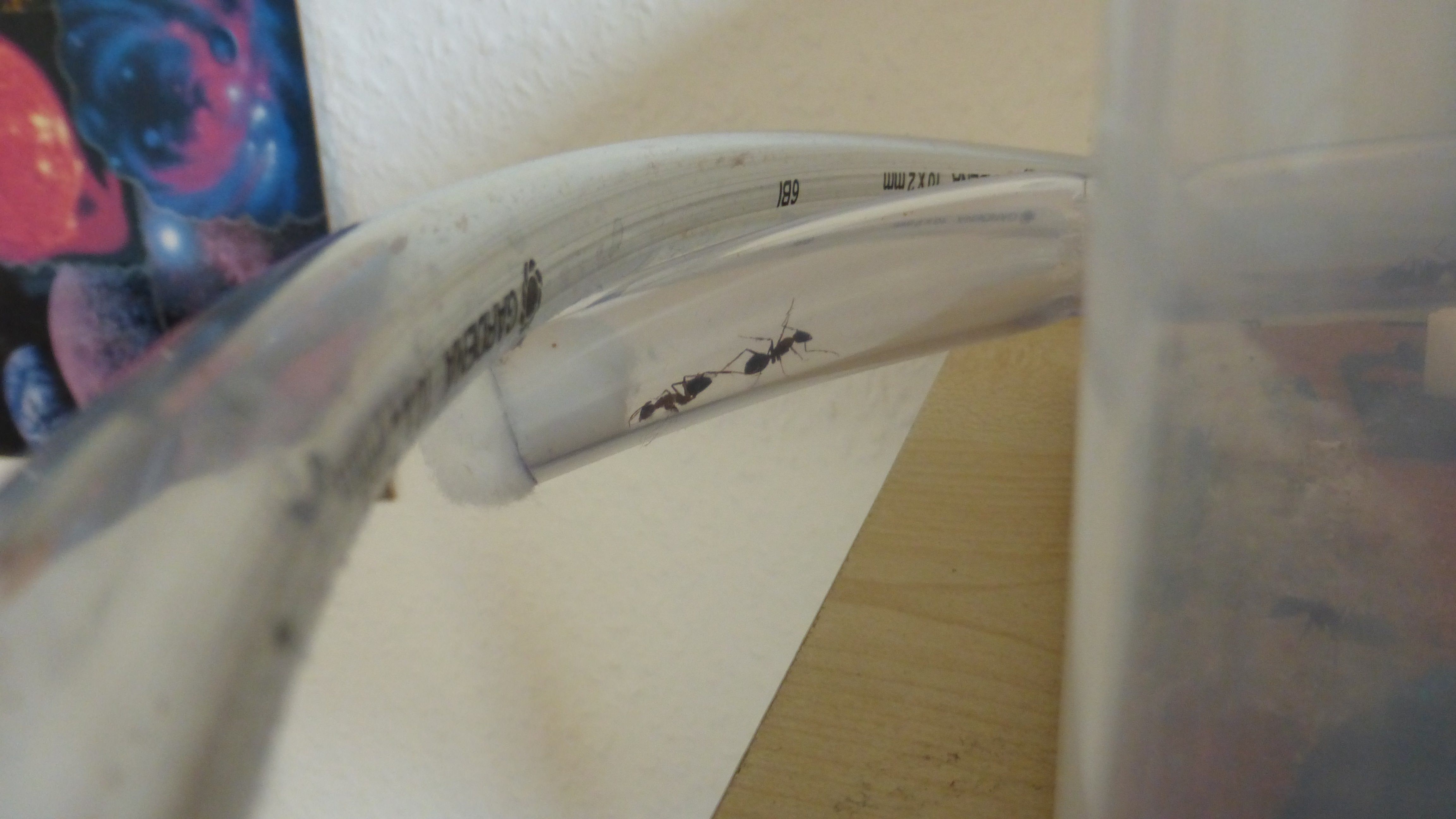 In den Arenen näher am Hauptnest fiel das dagegen ziemlich bald auf und es versammelten sich schnell einige aufgebrachte Arbeiterinnen um die Watte aus den Schläuchen zu zupfen.