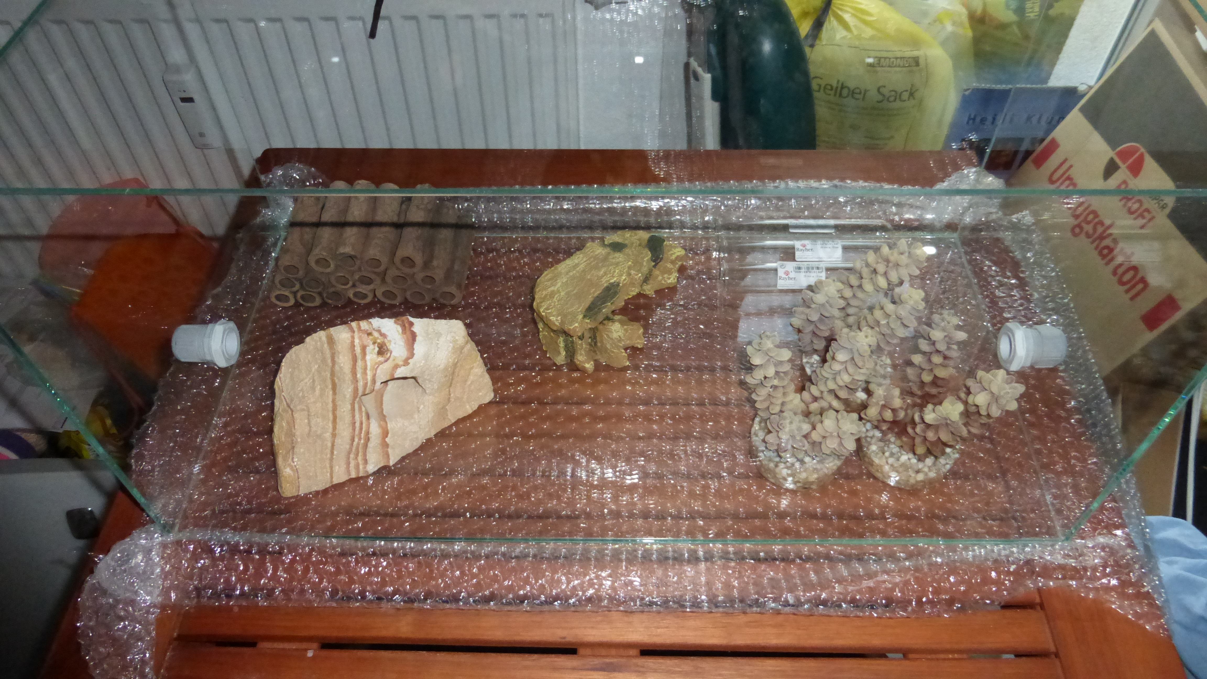 Der Dekostein und die Pflanzen bekamen nochmal eine Detailbehandlung. Nachdem alles wieder trocken war wurde es Zeit die Anlage auseinander zu nehmen.