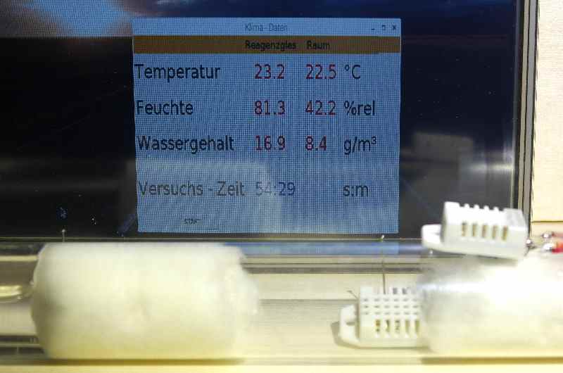 Ableiten lässt sich daraus auch der schnelle Anstieg der Feuchtigkeit im Versuch mit verschlossenen Reagenzglas.