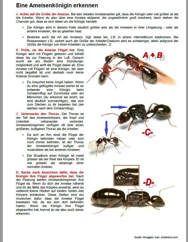 Hallo Sebantian, ja, für die meisten Ameisenhalter werden eher dieKöniginnen interessant sein. Die Bilder mit den Arbeiterinnen soll den jungen Leuten die Unterscheidung erleichtern. Die Arbeiterinnen werden sie ständig sehen. So haben sie auch den Vergleich, diese von den Königinnen unterscheiden zu können.