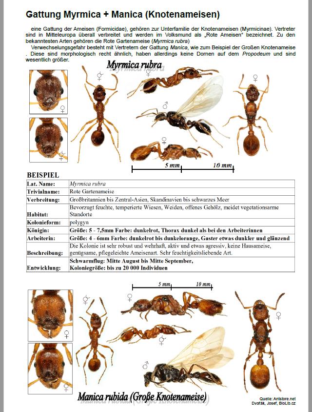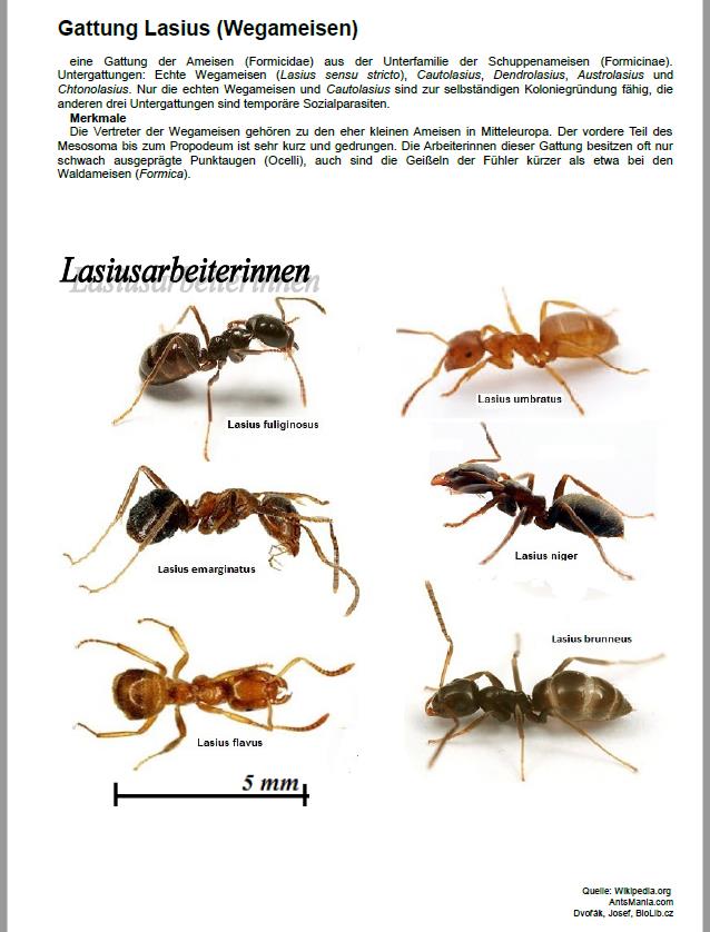 Das gesamte PDF umfasst derzeit 14 BlĂ€tter. Es soll Jugendliche nicht ĂŒberfordern, sondern Lust auf mehr machen. Deshalb will ich es so bĂŒndig wie möglich halten. Wer Lust auf mehr bekommt, dem empfehle ich "Die Ameisen Mittel- und Nordeuropas" von Bernhard Seifert. Zu diesem will und kann ich keine Konkurrenz sein. Deshalb will ich diese Jugend nur mit einem Vermerk auf die VielfĂ€ltigkeit unserer Arten hinweisen, ohne langatmig zu werden. Ich hab den Vermerk jetzt so drin, wie von Dir vorgeschlagen.