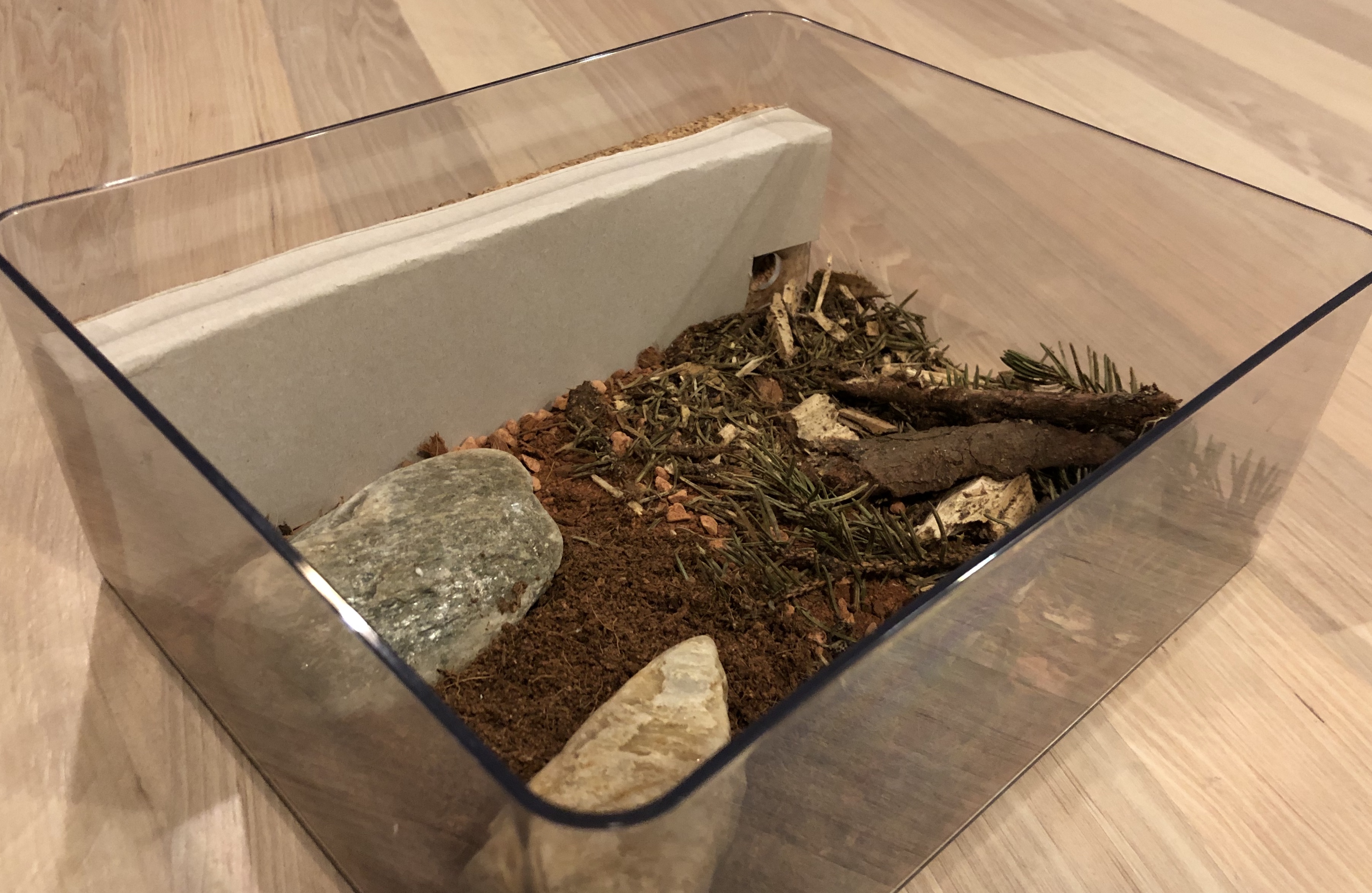 ein internes Nest wird nichts mehr, da schon eine Arena vorhanden ist und das einfach wegen dem Stress, dem sie ausgesetzt wären, nicht möglich ist. Ich würde dann einfach das Nest dunkel halten und eben wegen der Schimmelgefahr wahrscheinlich auch nicht bewässern, in der Arena ist aber ein Reagentglas, dasss nur als Wassertank bestimmt ist. Soweit ich das sehe, hast du keinen Granulat im Nest, macht ihnen das etwas aus? Oder kann ich einfach ein bisschen Granulat in die Ecke der Arena streuen, damit sie dann selber entscheiden können, was sie damit anstellen wollen?