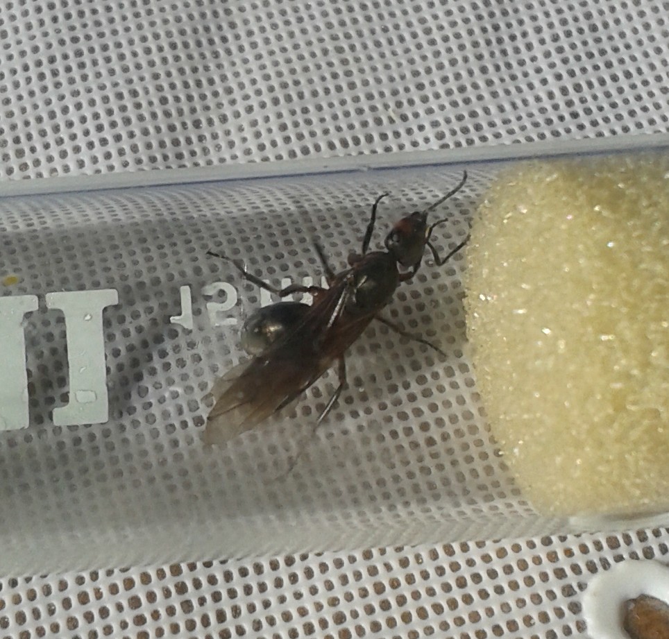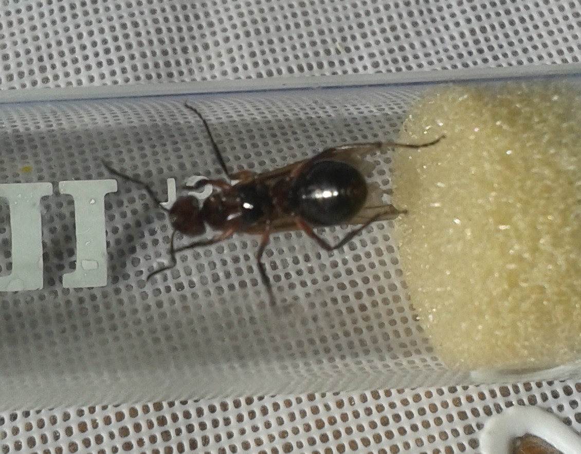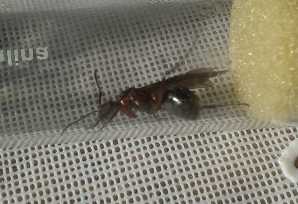 Okay, die Ameise ist gestern wieder frei gekommen. Nachdem sie zuerst gar nicht raus wollte, ist sie dann als erstes ein paar mal um das RG herum und hat die FlĂŒgel gestreckt, bevor sie dann gesund und munter wieder los ist.