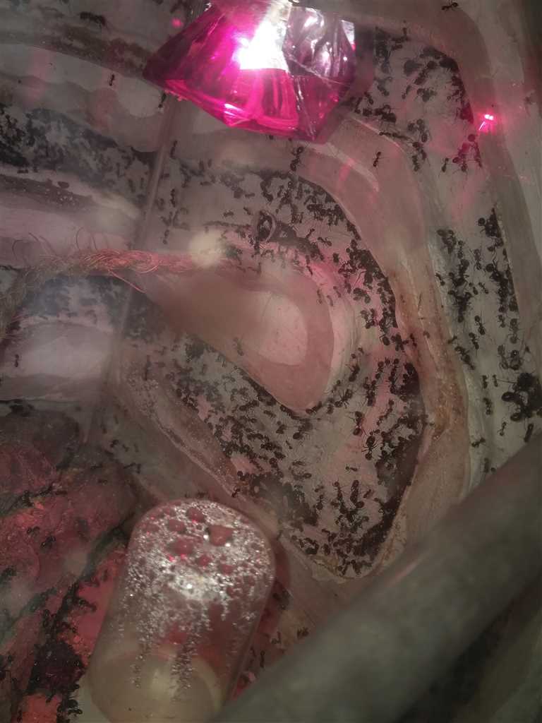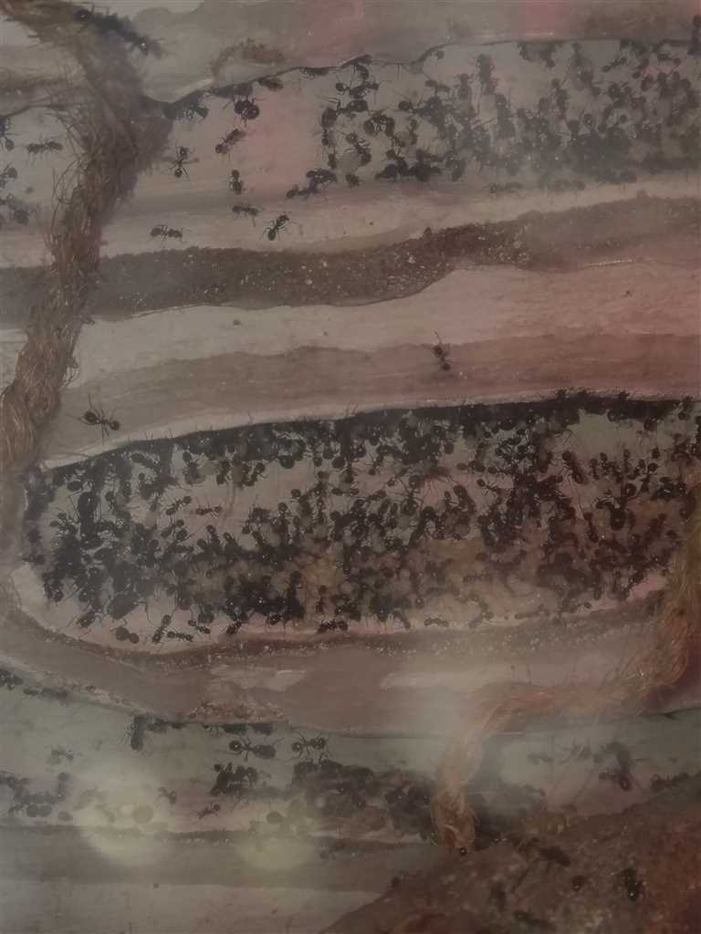 Aber... nur von spÀrlicher Interesse angenommen verirrten sich die Ameisen SpÀher im Nest. Zumindest sah es so aus, da die einzelnen Kammern allesamt inspiziert wurden, aber die Damen liefen in den Kammern nur hin und her und starben! Aber warum? Zudem versuchten sie verzweifelt zwischen Ytong und Glasscheibe durchzuklettern haben wie besessen eine Stelle sogar massiv bearbeitet, doch viele blieben stecken und sind dort verendet! An bei mal ein paar Bilder vom nun abgestöpseltem Nest.