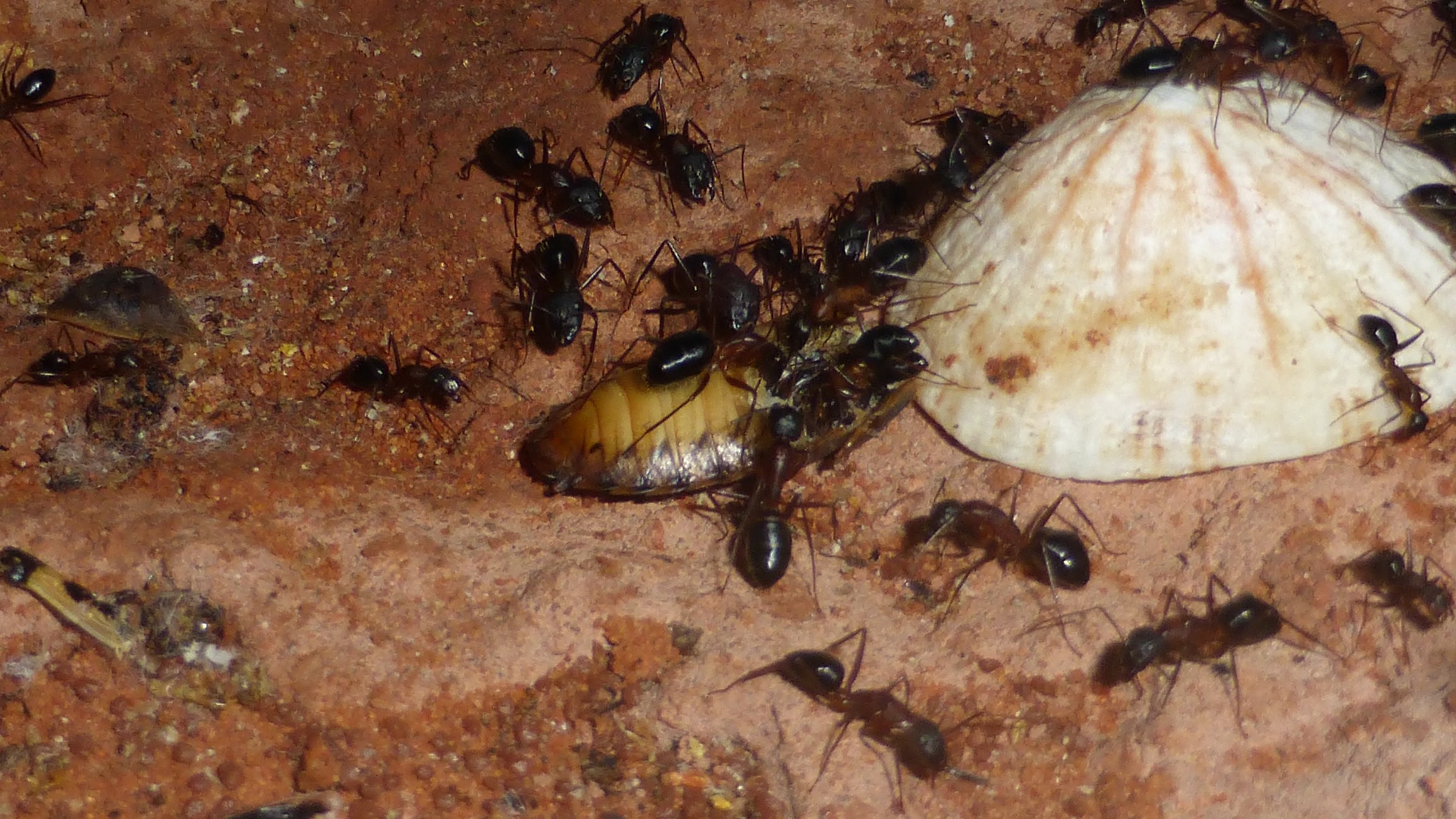 Sonnenbaden mögen sie noch immer, wobei mir aufgefallen ist, dass sich mehr Ameisen in der Arena befinden, wenn ich die Lampe ein paar Tage auslasse. Das dürfte aber wohl eher damit zu tun haben, dass sich die Ameisen generell an ungestörten Orten ansammeln.
