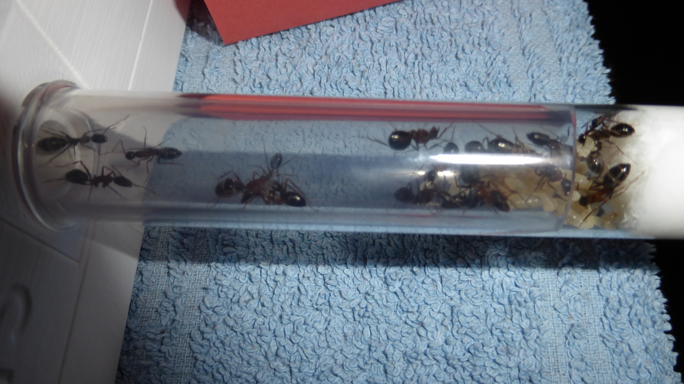 Nach einer interessante Diskussion ĂĽber den Zuckergehalt verschiedener FlĂĽssigkeiten auf Formiculture hab ich mal angefangen Traubenzucker und die Ahronsirupmischung zu geben und den Ameisen scheint das sehr zu gefallen.