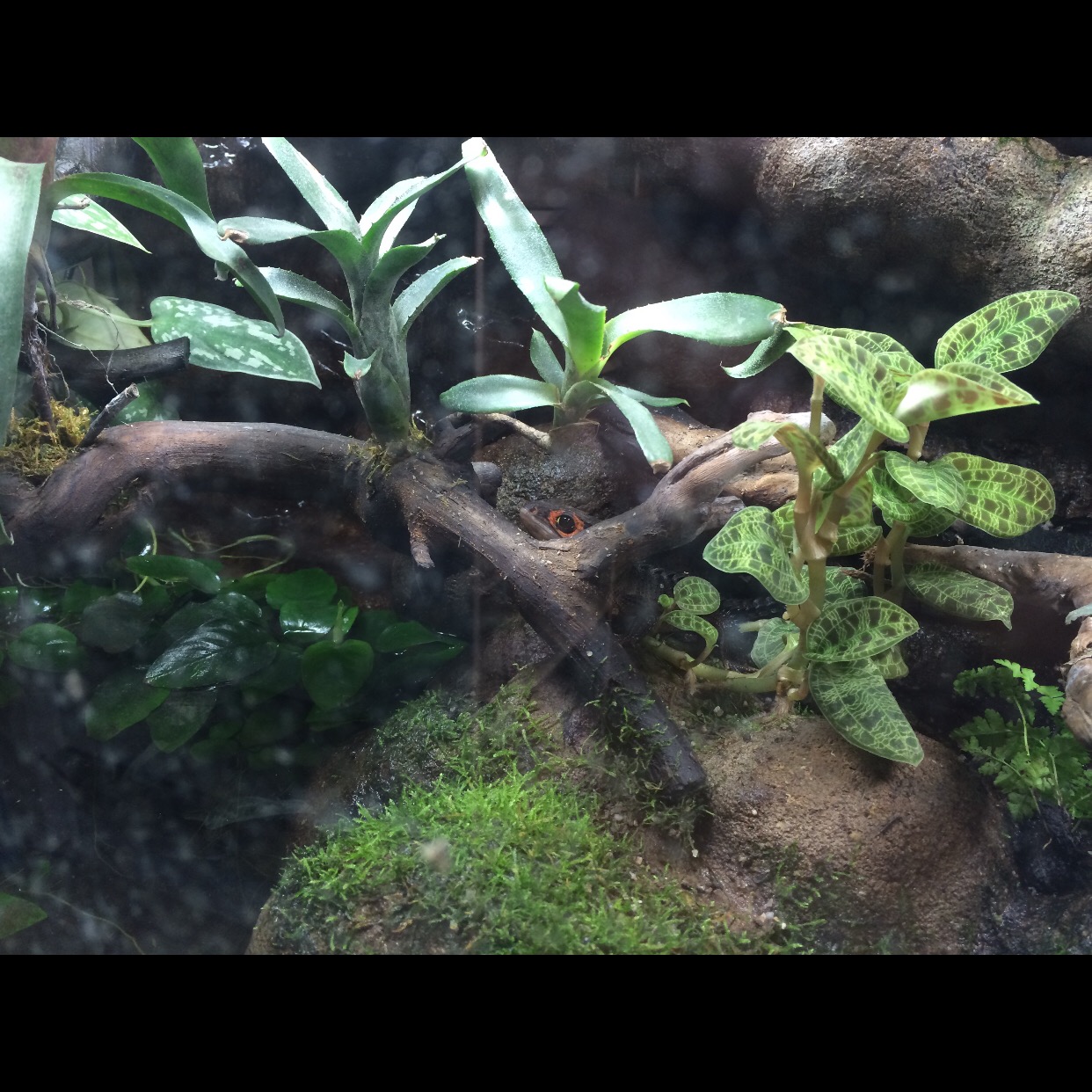 Bepflanzt mit Lebermoos und einem unbekannten tropischen Farn