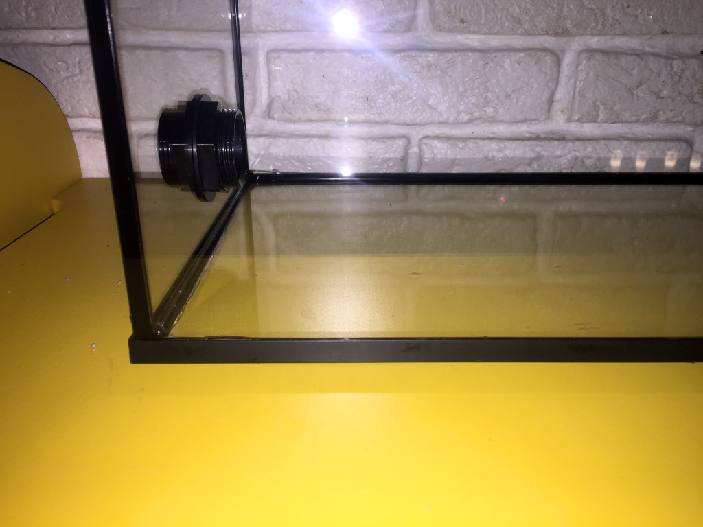 Hab abends noch schnell das erste Pilzbecken fertig gestellt: 2 Löcher gebohrt, Tankdurchführungen eingeschraubt, Deckel gebastelt.