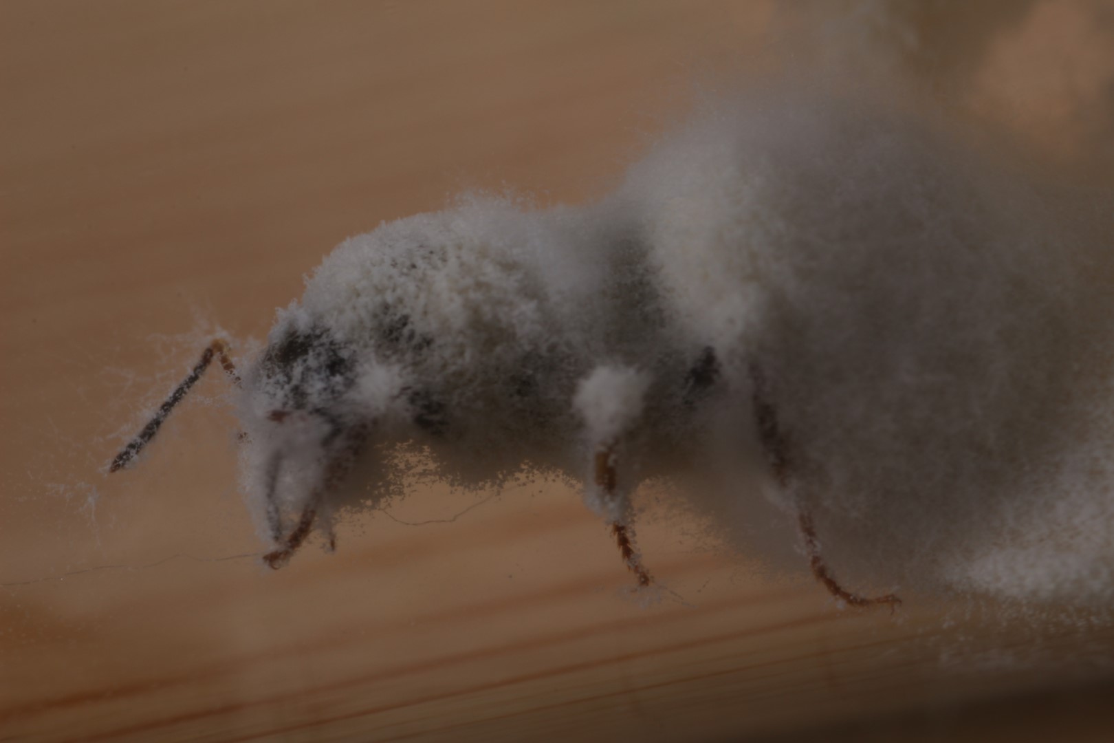 Die kleine Kolonie entdeckte ich in einem Blumentopfuntersetzer zwischen Topfboden und Untersetzer, wo sie wohl jeden Tag beim Gießen für einige Minuten komplett unter Wasser stand. Dennoch scheint sie sich prächtig zu entwickeln - immer wieder erstaunlich, was diese kleinen Kreaturen alles aushalten