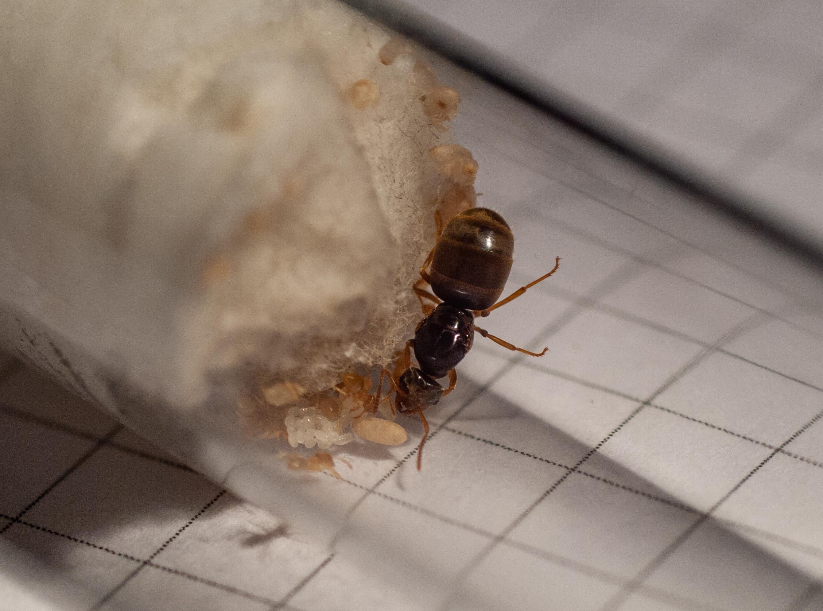 Mich hat diese Ameise am späten Nachmittag des 22.07. im Süden von Österreich innerorts auf meinem Balkon besucht. Ich habe schon länger mit dem Gedanken geliebäugelt und die Gelegenheit ergriffen. Heute habe ich bemerkt, dass die erste Charge Nachwuchs geschlüpft ist - dürfte ein bis drei Tage alt sein.