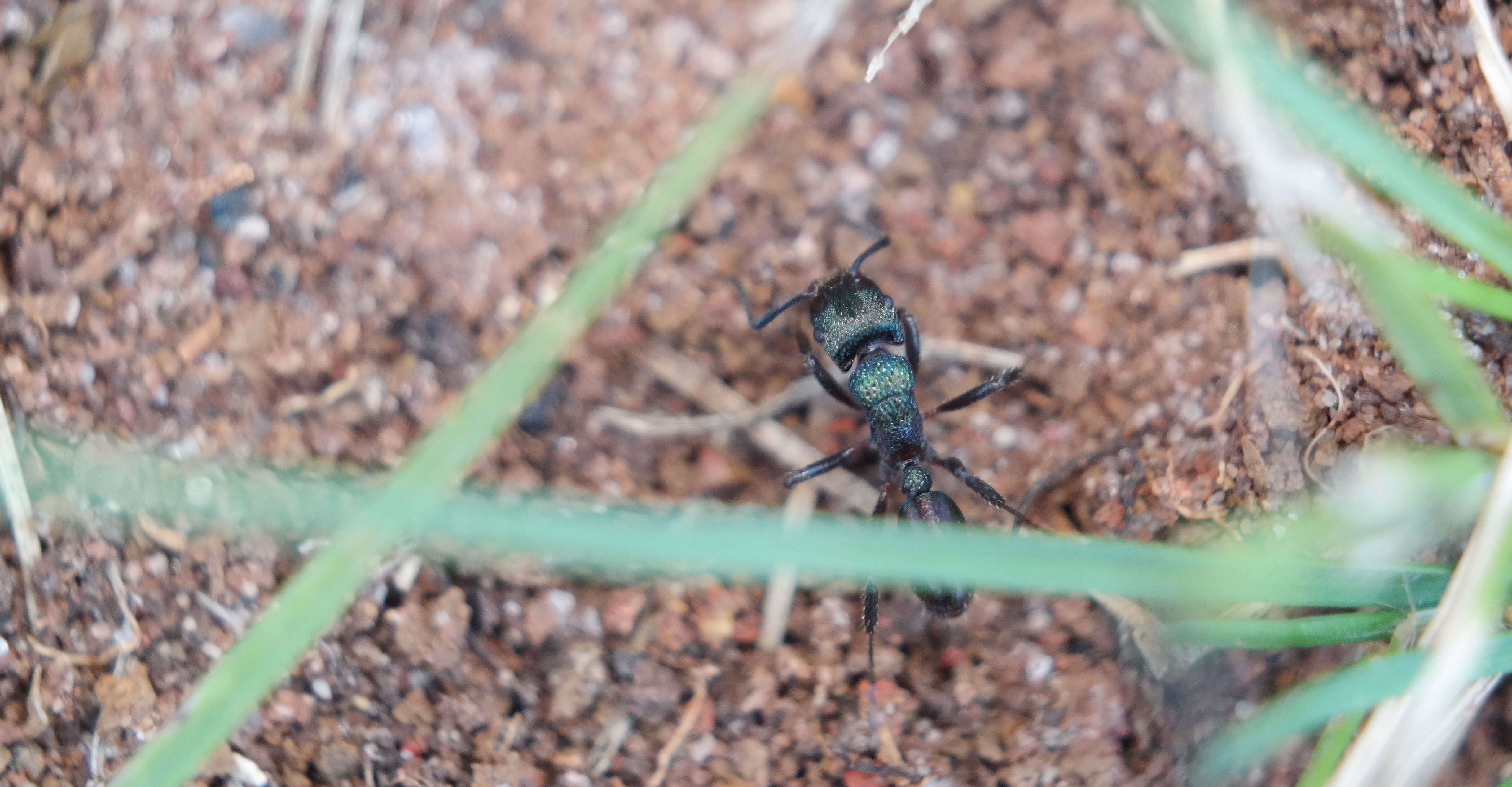 Eine kleine Ponerinae, welche jedoch bei genauerem Hinschauen eine beeindruckende Färbung aufweist. Einige Tiere schimmern violett, andere blau und wieder andere leuchtend grün.