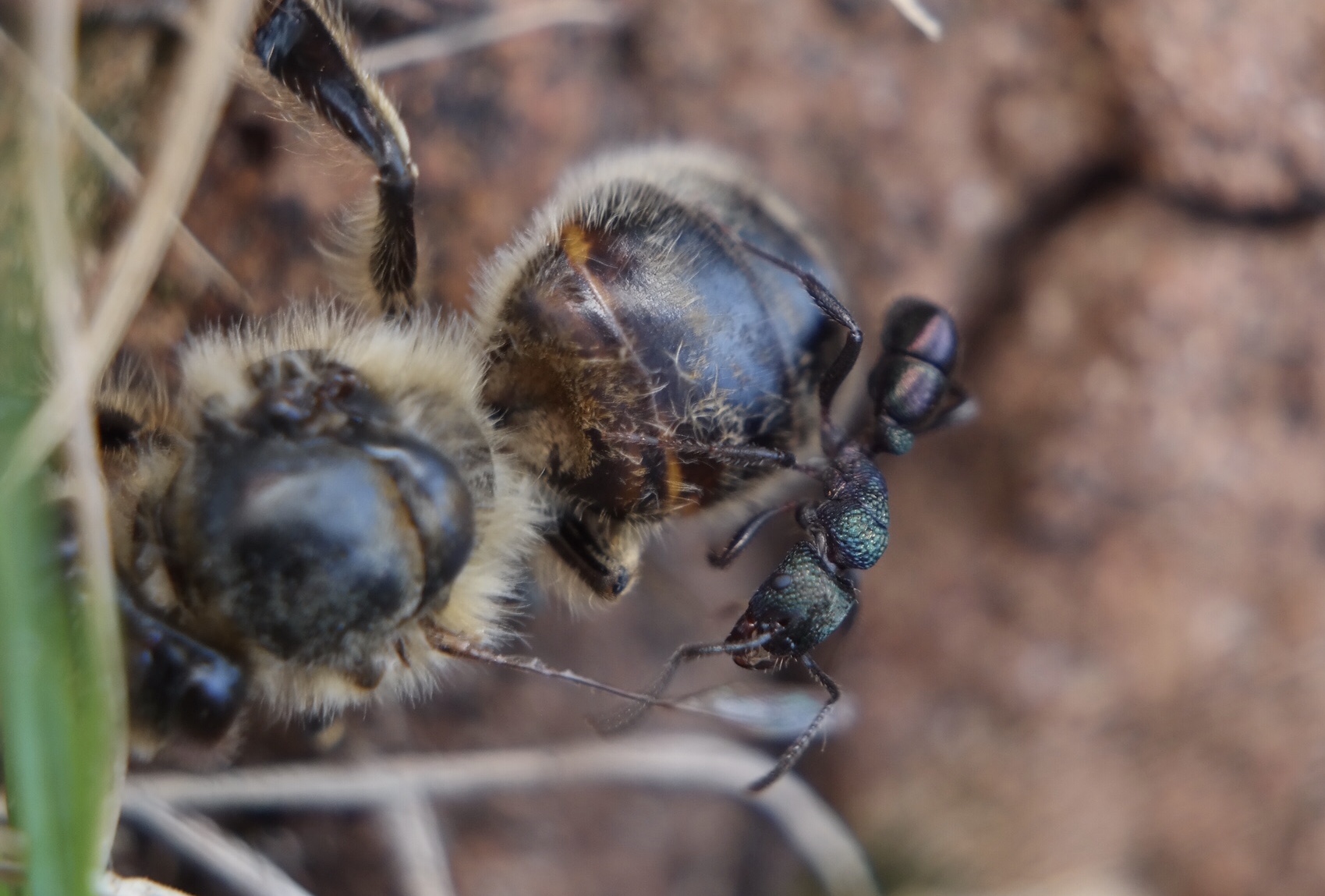 Ein riesiges Insekt. Es schien gut und gerne doppelt so groß wie Myrmecia pilosula, und bei genauerem Hinsehen entpuppte es sich tatsächlich als eine der größten Ameisenarten der Welt; Myrmecia pyriformis.