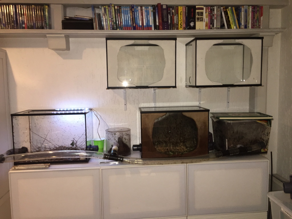 Wenn die angeschlossen sind und auch das neue Futterbecken wird noch ein viertes Pilbecken in Höhlenoptik gebaut, welches die IKEA Samla Box ersetzen soll. …und dann hab ich noch eine Idee für eine Laufwegserweiterung die nicht aus den üblichen Acrylglasröhren besteht. Da werde ich aber erst einen kleinen Prototypen zum Testen bauen, bevor ich die große Version baue.