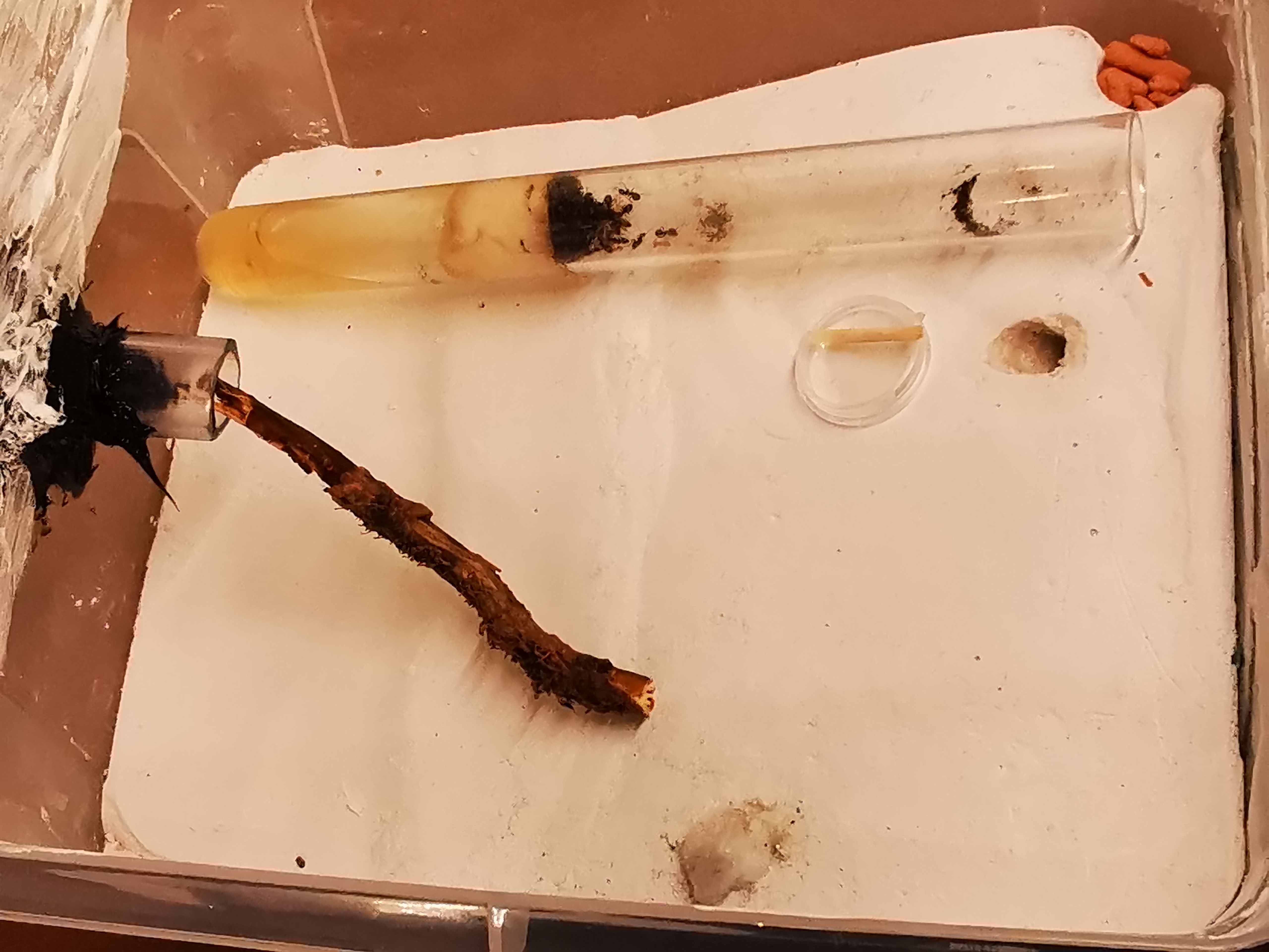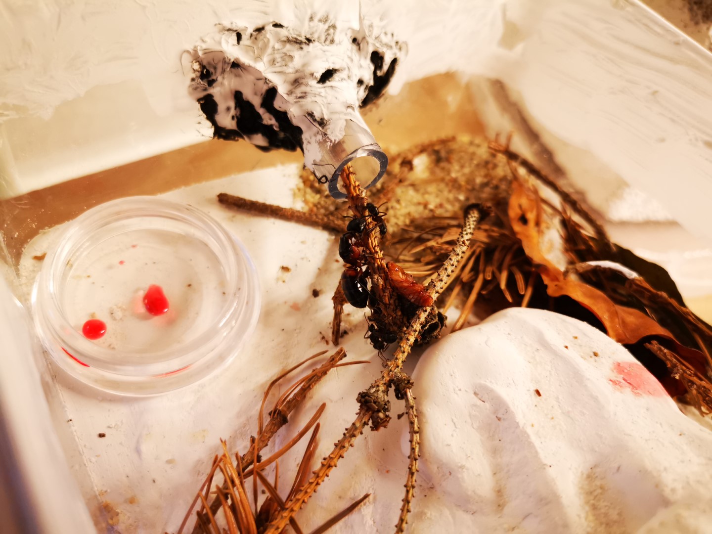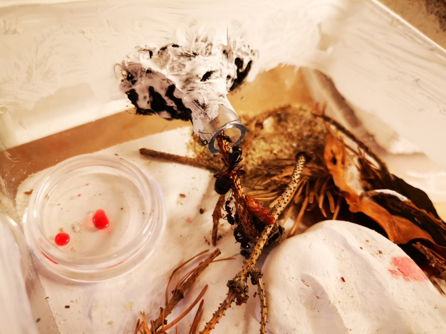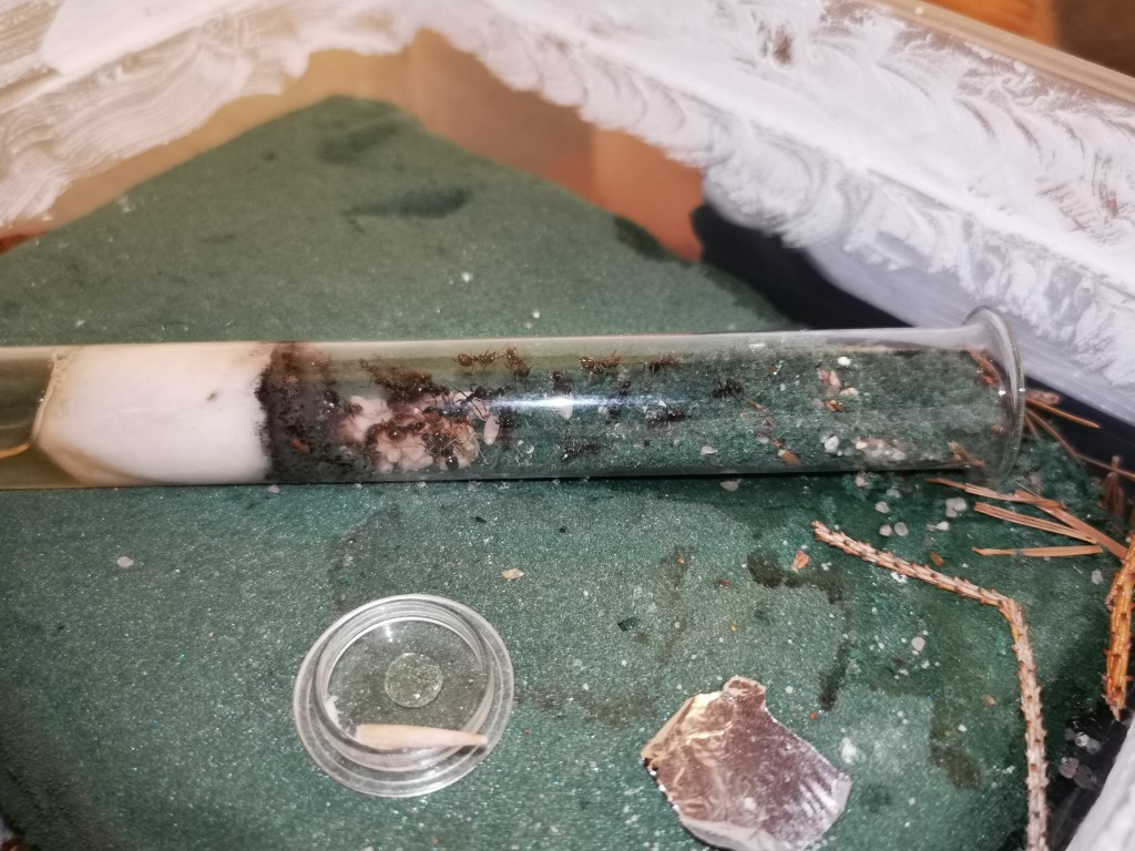 Und die Camponotus haben ihr Nest mit angebotenen Tannennadeln verschlossen und schĂŒtzen die