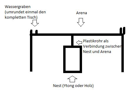 Im Großen und Ganzen ist das auch immer noch so, nach reiflicher Überlegung habe ich mich aber dazu entschieden das Nest innerhalb der Arena zu lassen. An dieser Stelle auch einmal vielen Dank für die Ratschläge zu meinem Beitrag dazu.