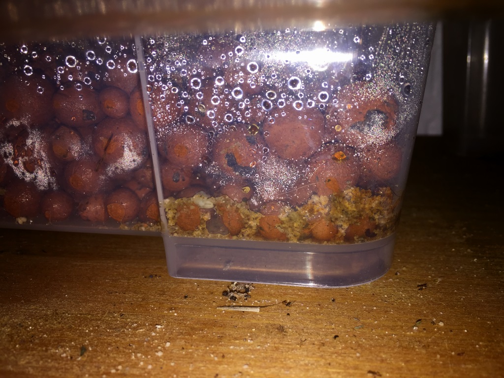 Leider haben meine Sorgenkinder angefangen, den Pilzmüll im Pilzbecken zwischen den Blähtonkugeln zu lagern - die tun auch nichts was sie sollen oder ich von ihnen erwarte! ;-)