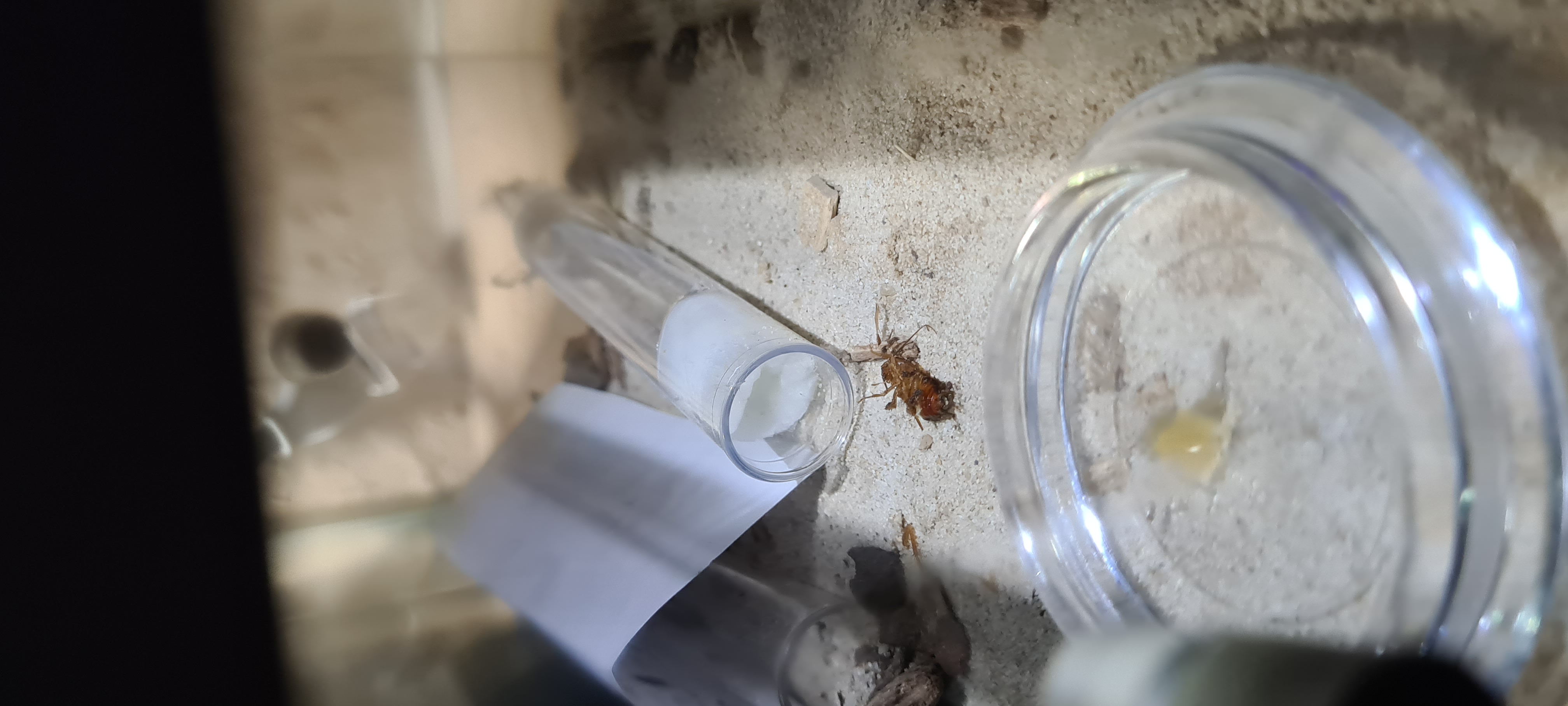 Hab die Kolonie jetzt in ein 20x10cm formicarium gesetzt das sollte fĂŒr den Anfang reichen dazu noch eine neue trĂ€nken ,einen Tropfen Honig und ein StĂŒck schockoschabe